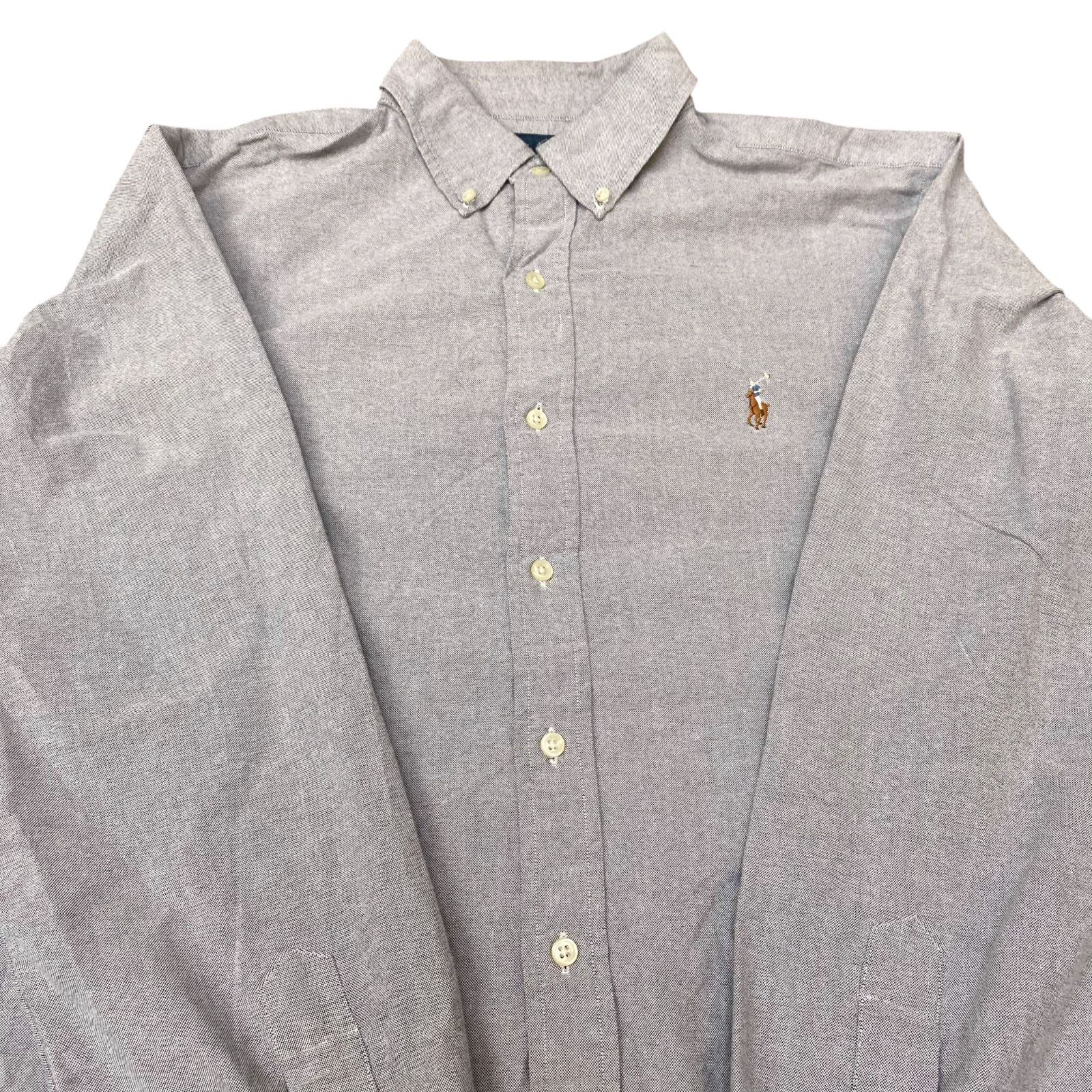 Ralph Lauren Shirt Mens L Grey Custom Fit Long Sleeve Pony Logo Button Down