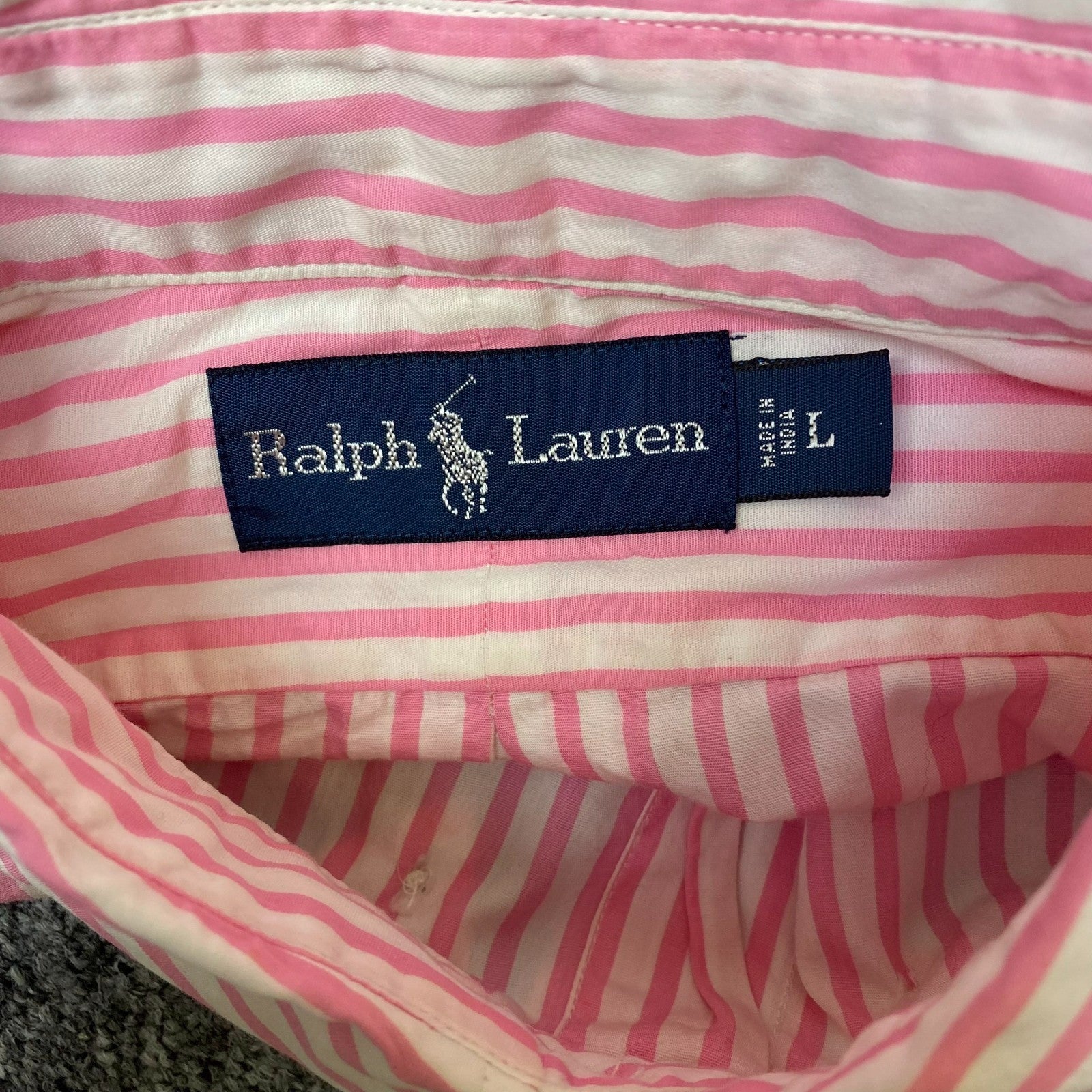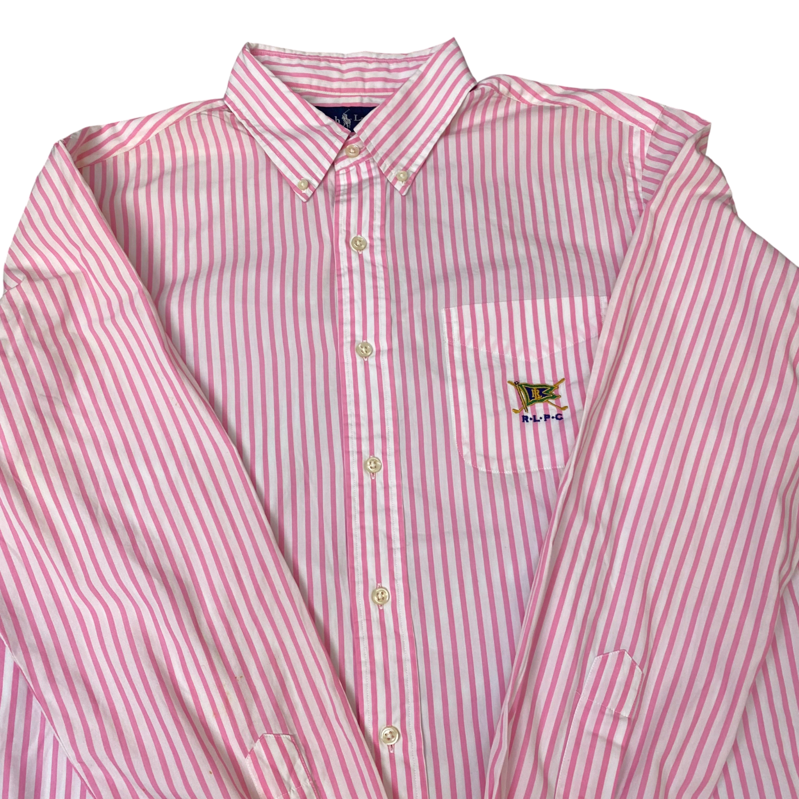 Ralph Lauren Shirt Mens L Pink White Striped Long Sleeve Embroidered Button Down