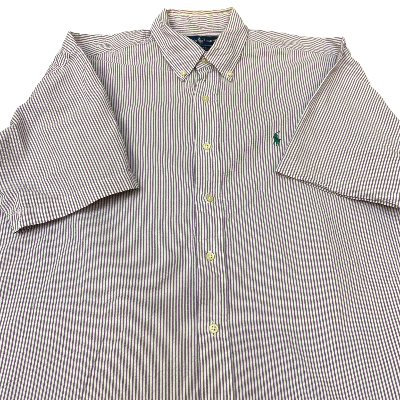 Ralph Lauren Shirt Mens L Purple White Striped Blake Short Sleeve Pony Button Up