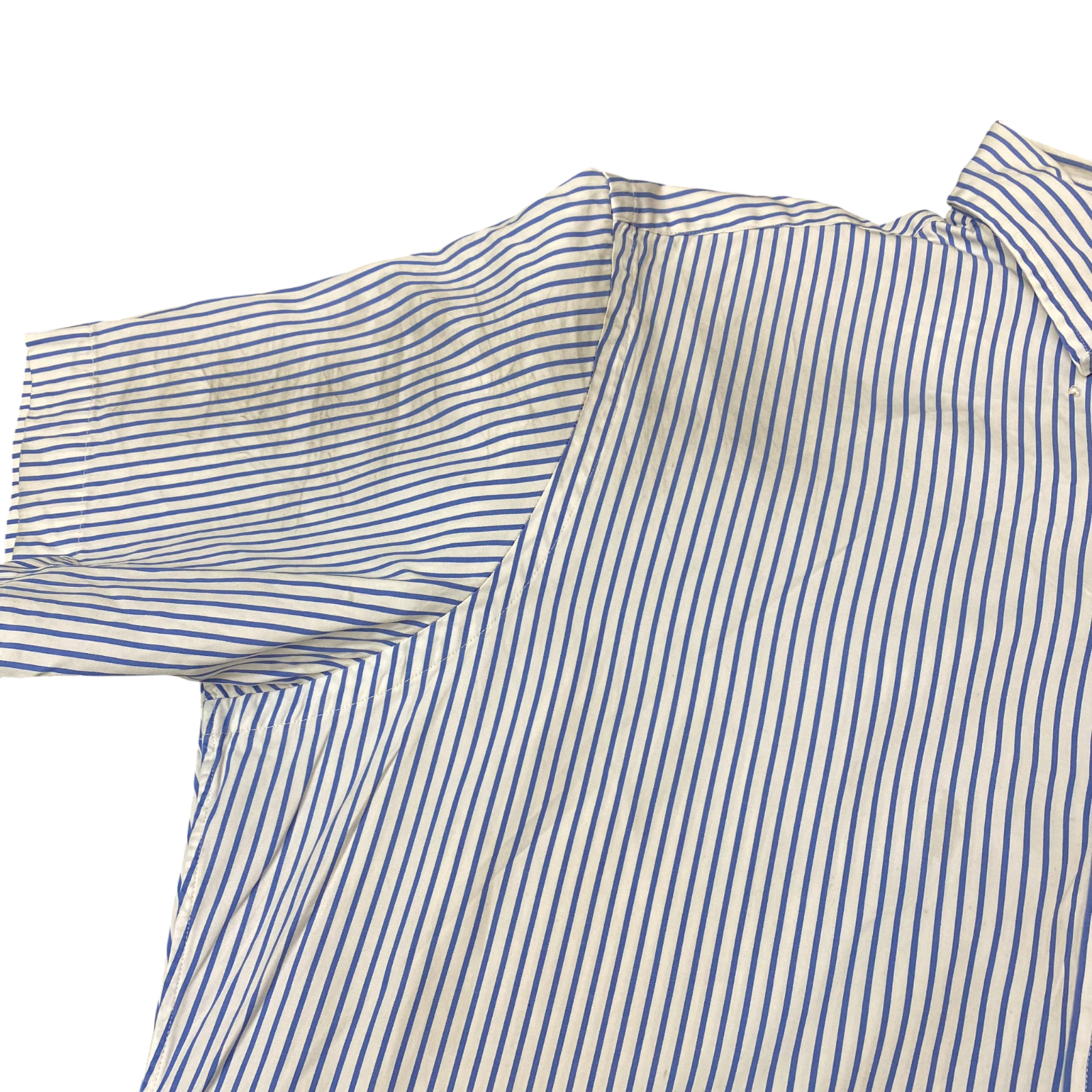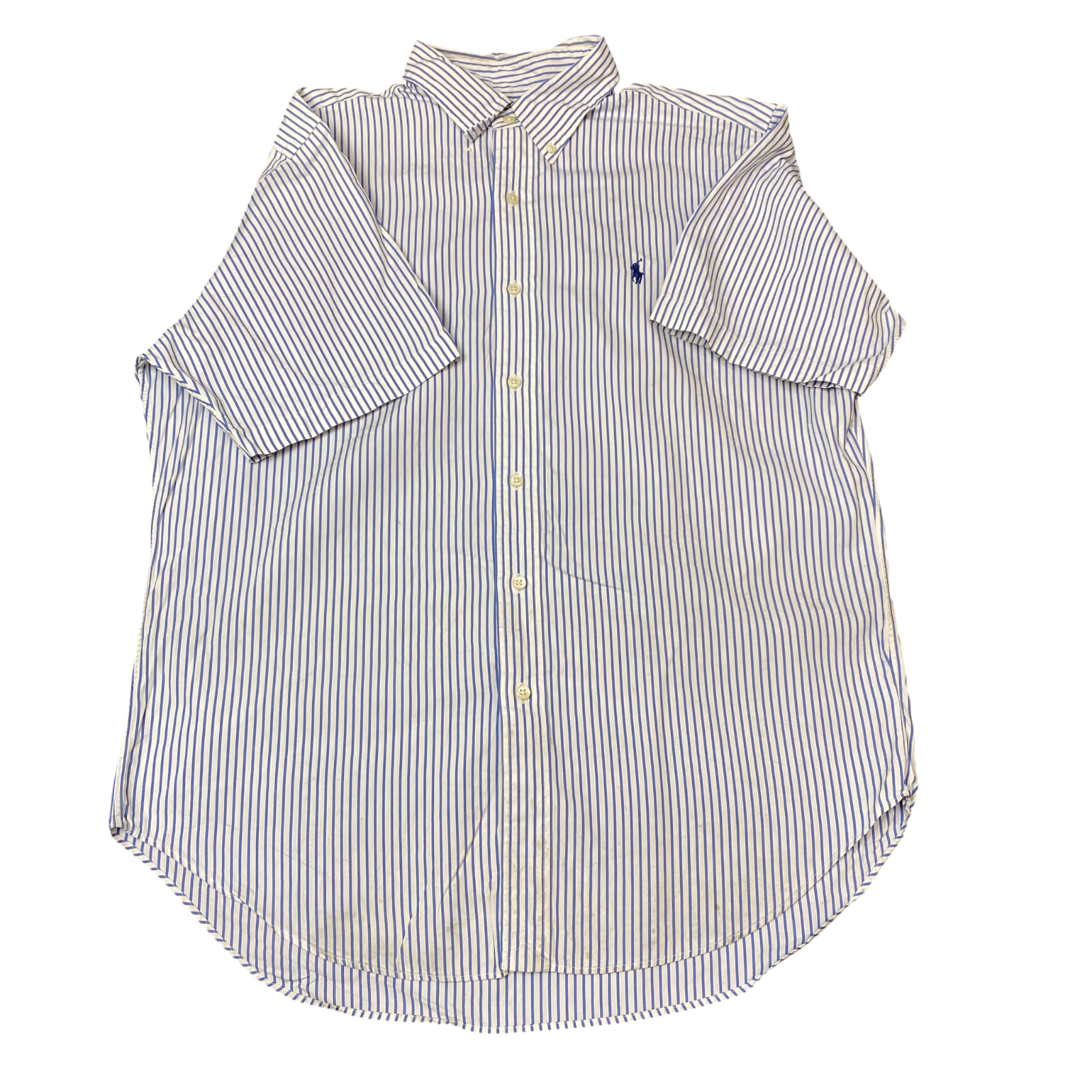 Ralph Lauren Shirt Mens L White Blue Striped Classic Fit Short Sleeve Button Up