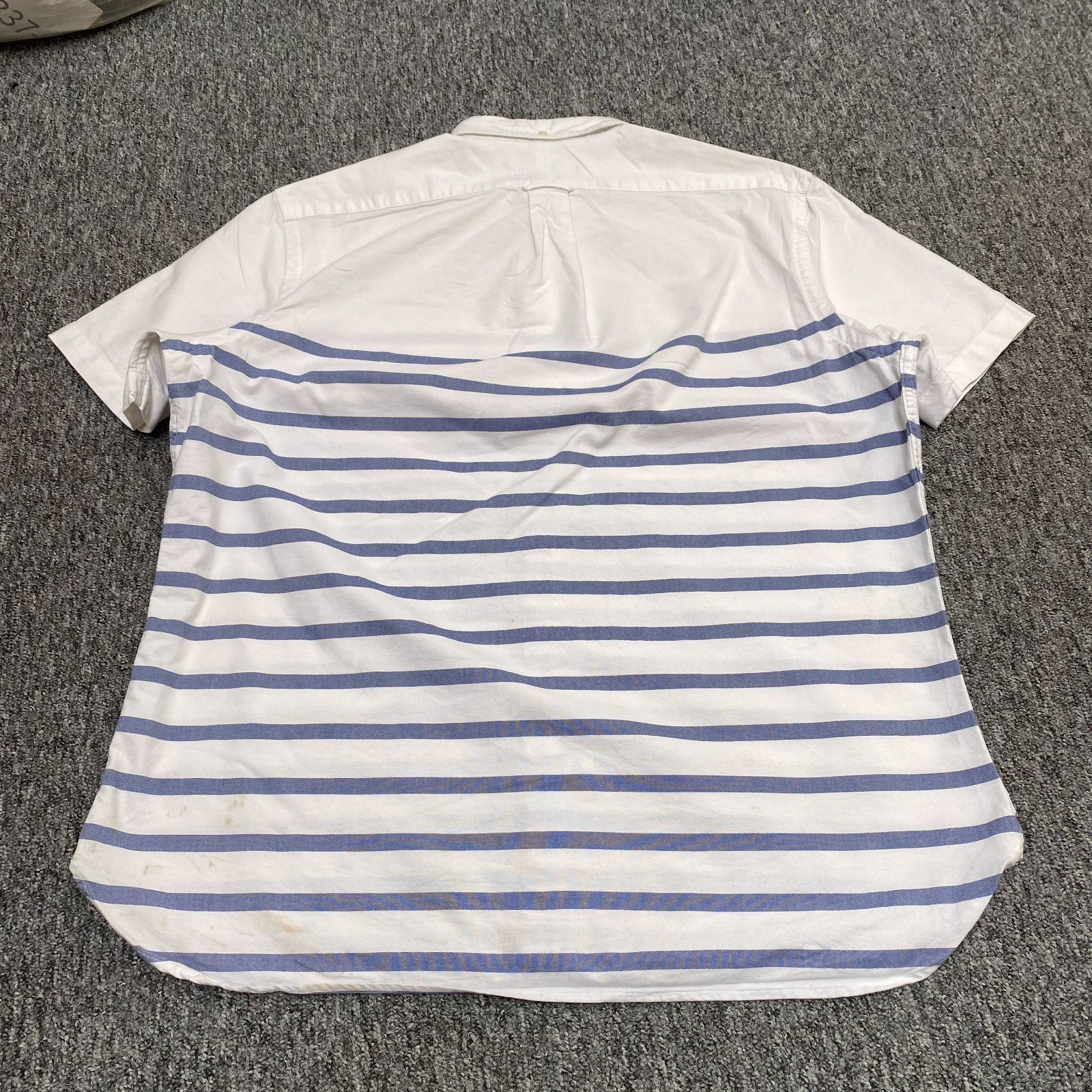 Ralph Lauren Shirt Mens L White Blue Striped Short Sleeve Pocket Button Down
