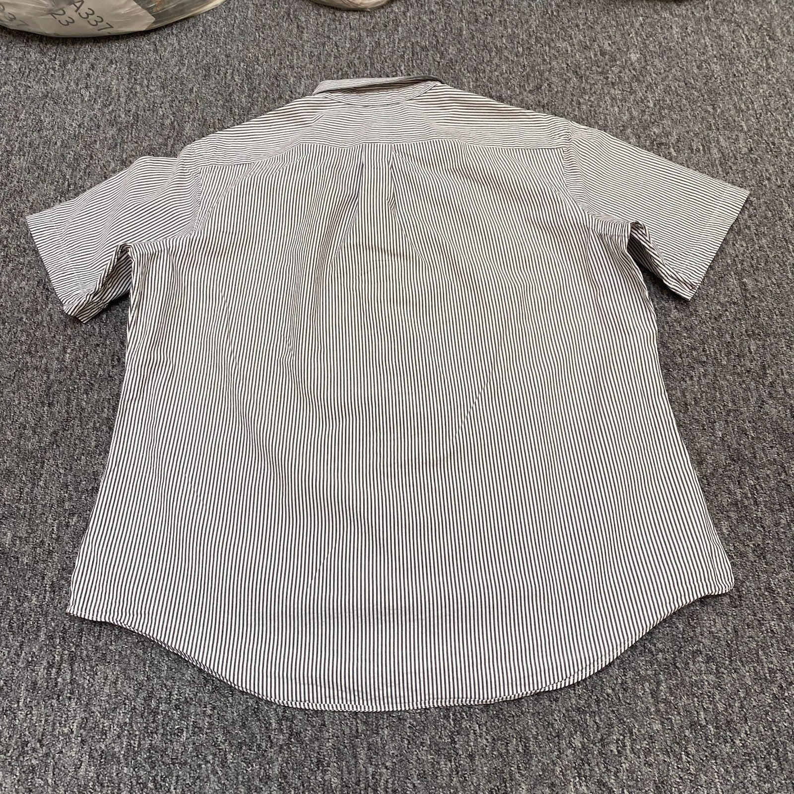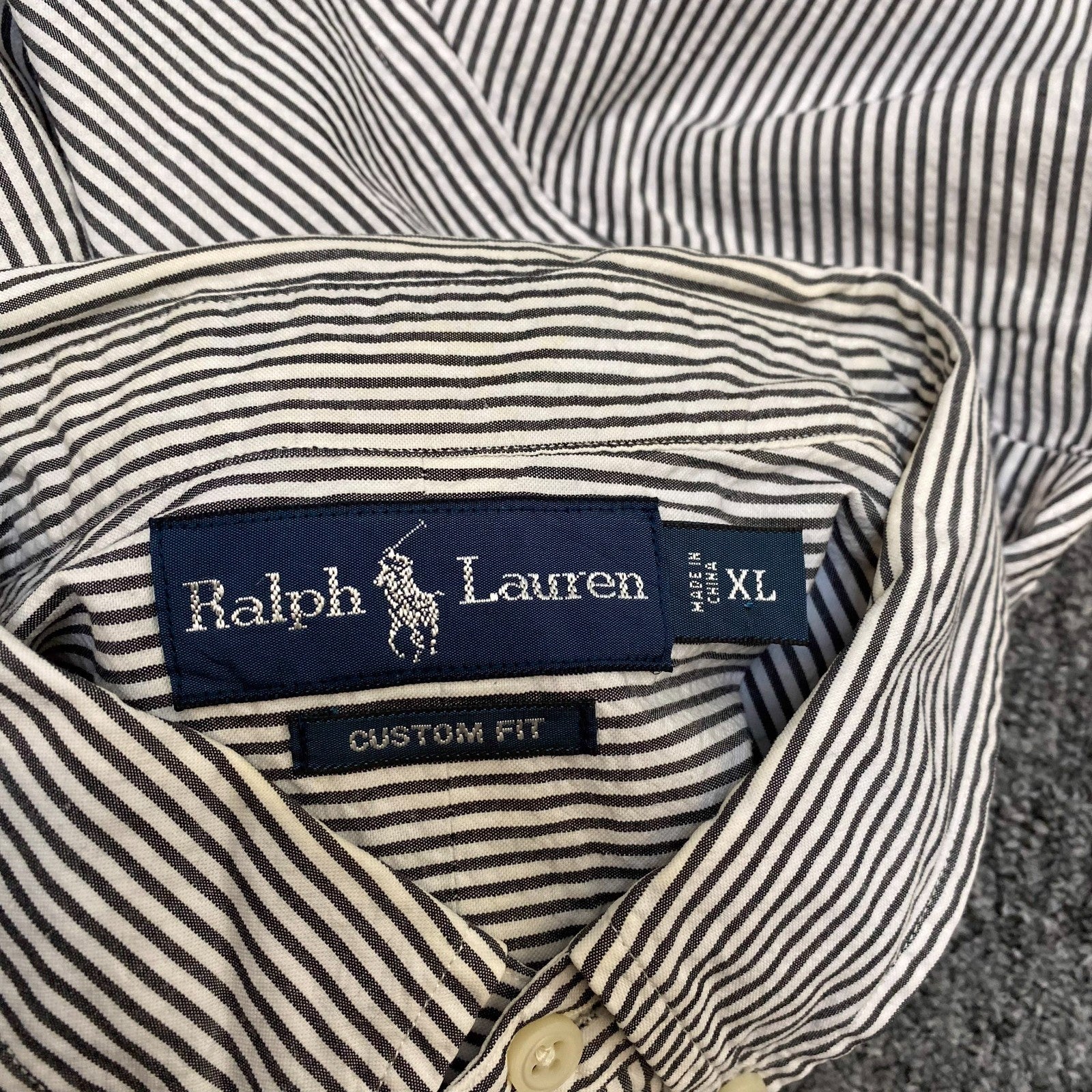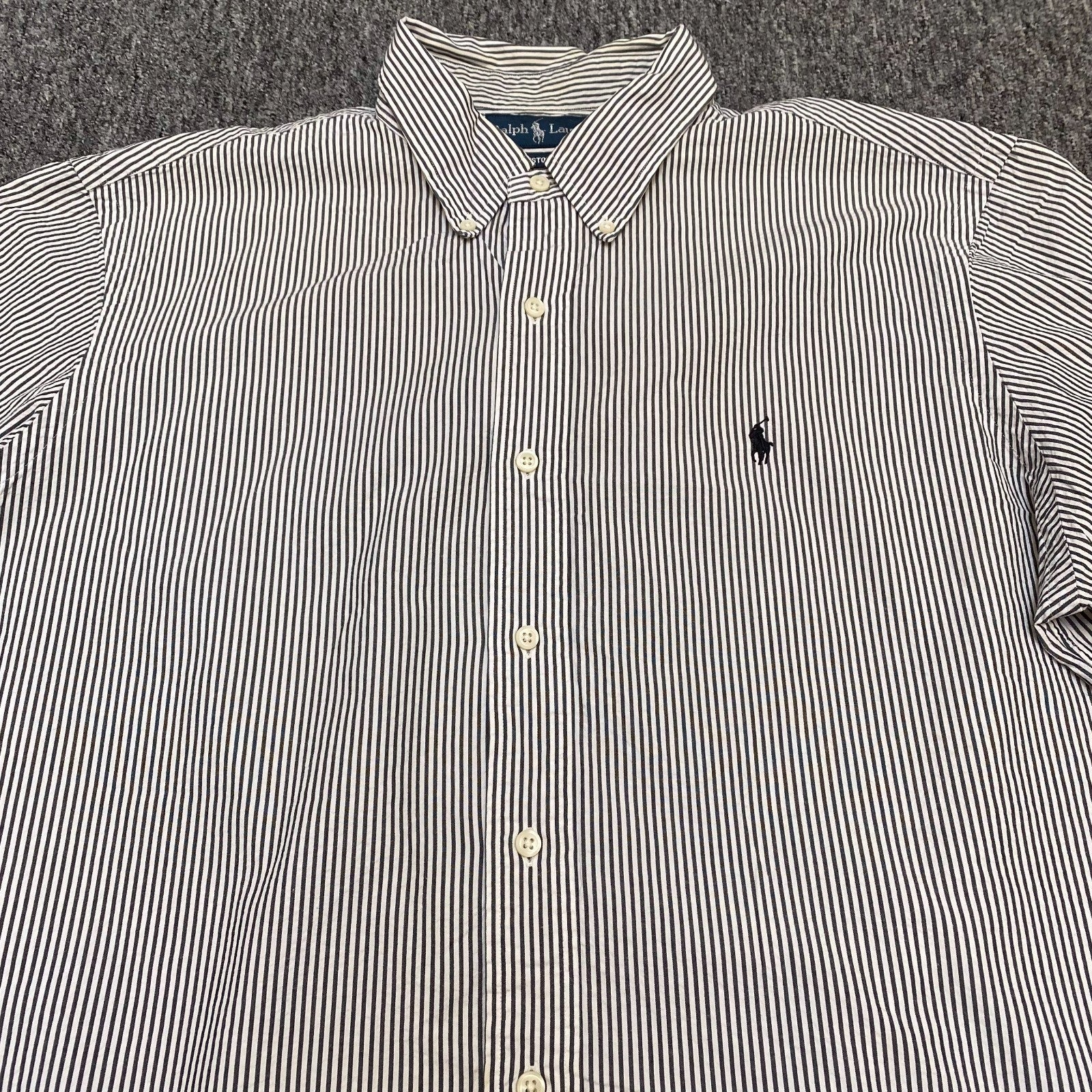 Ralph Lauren Shirt Mens XL White Black Striped Custom Fit Short Sleeve Button Up