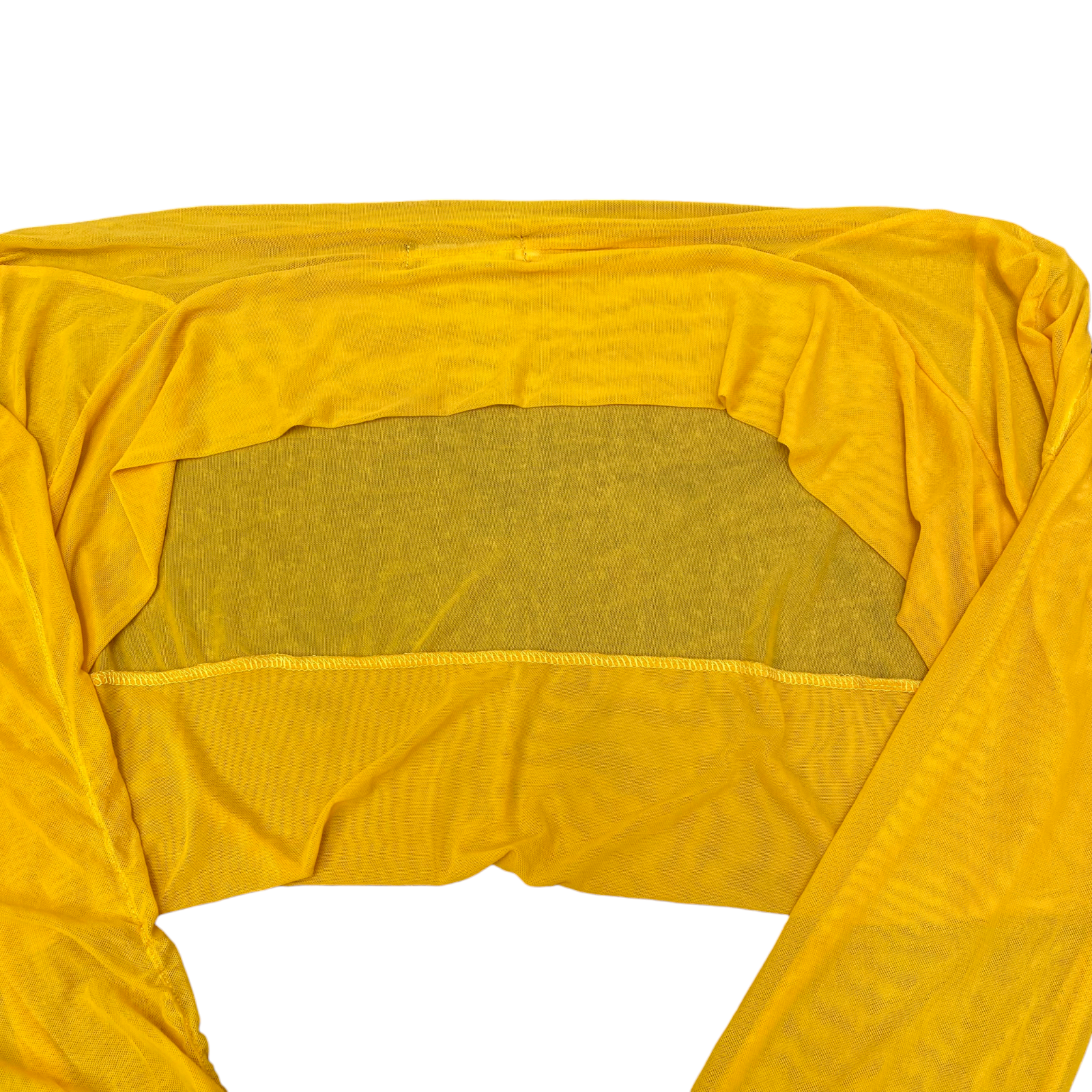 Rimoda Cropped Top Womens L Yellow Solid Sheer Long Sleeve Boat Neck Pullover