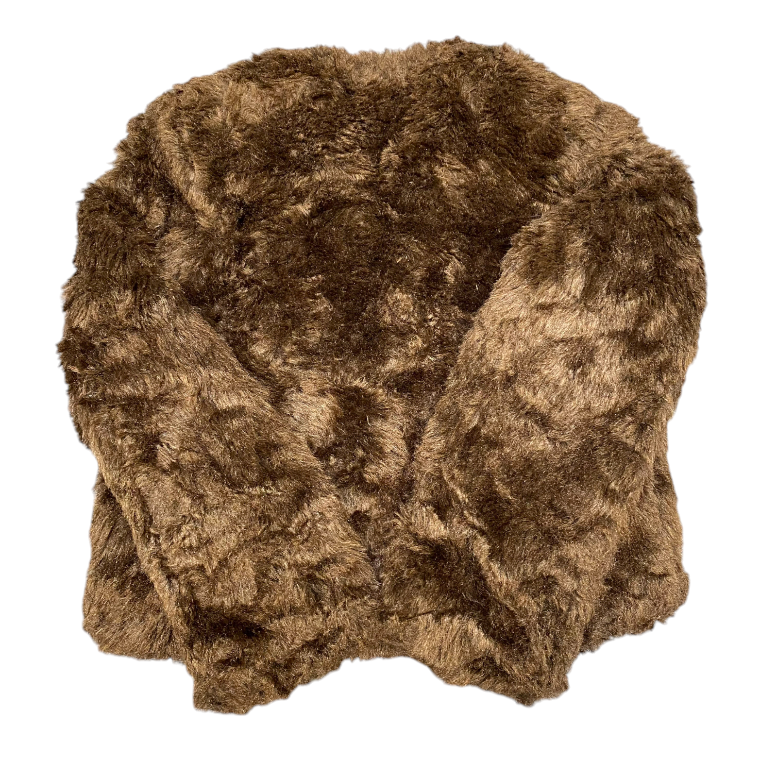 Roccobarocco Faux Fur Jacket Womens Medium Brown Lined Long Sleeve Open Front