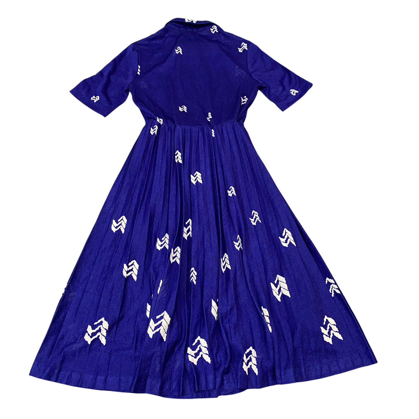 Romache A-Line Dress Womens S Blue Geo Print Knit Pleated Collared Button Front