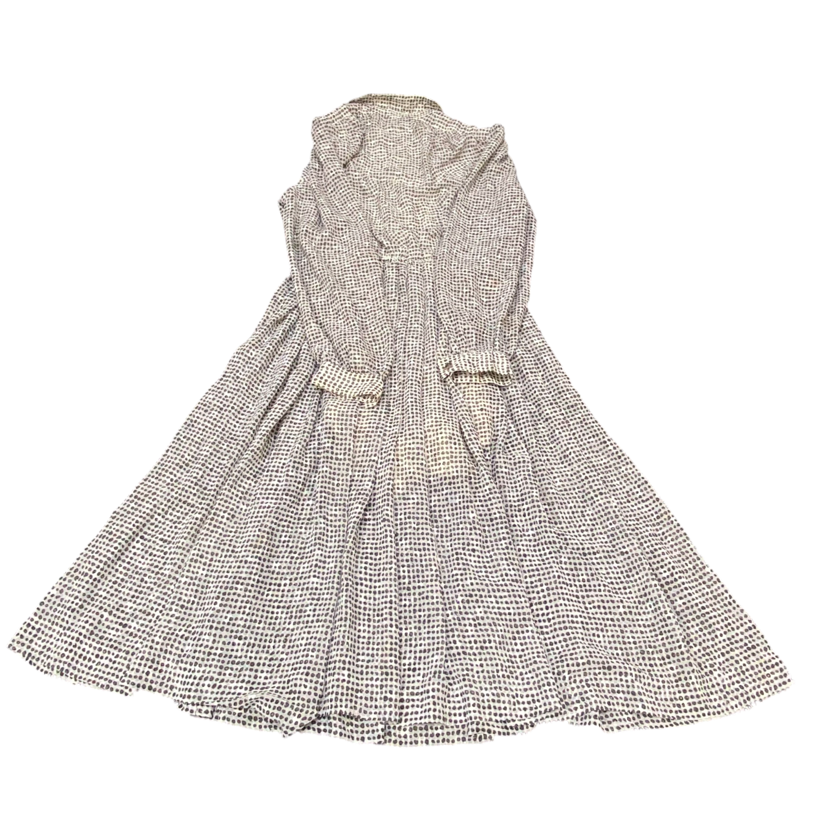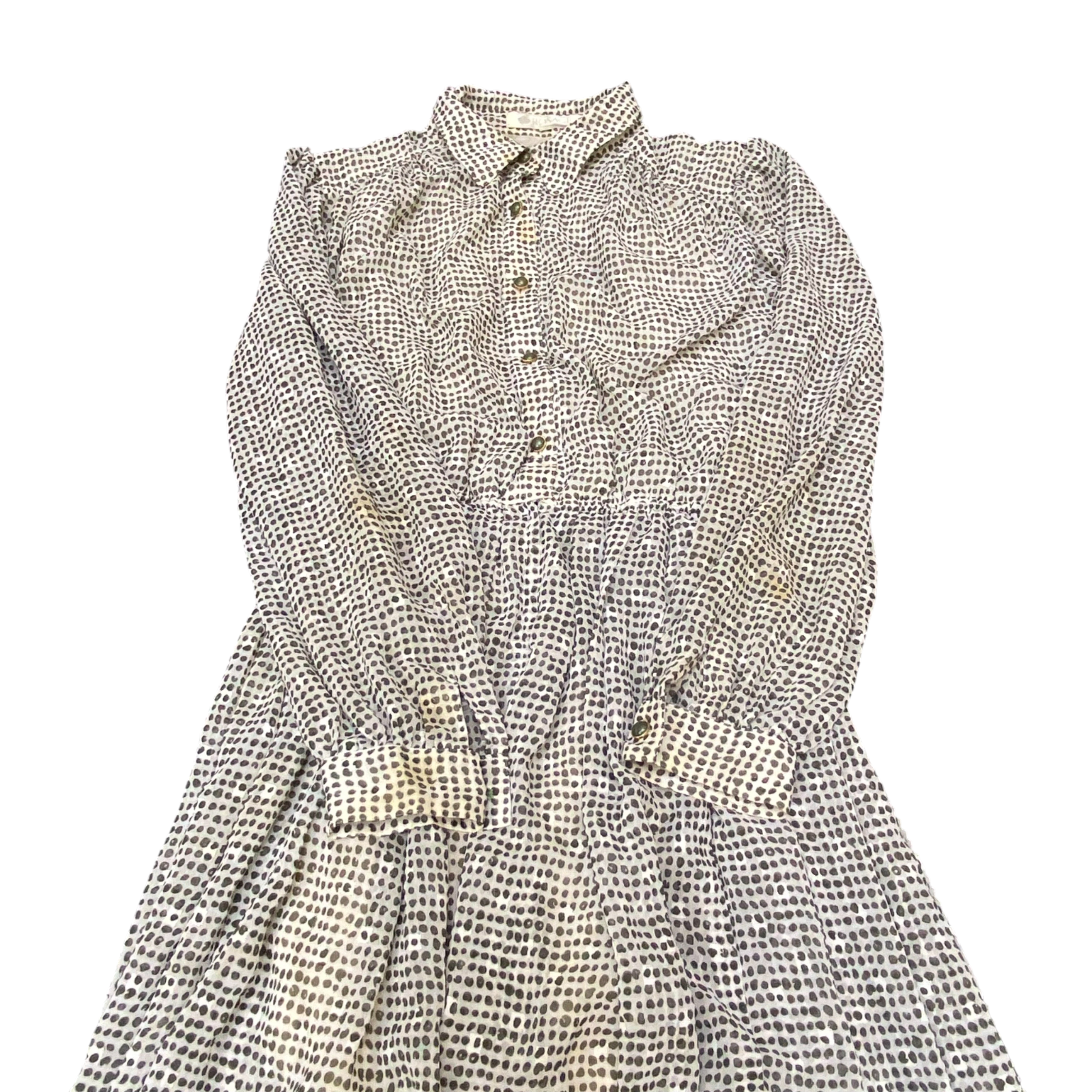 Rosace A-Line Dress Womens S White Green Polka Dot Pleated Long Sleeve Collared