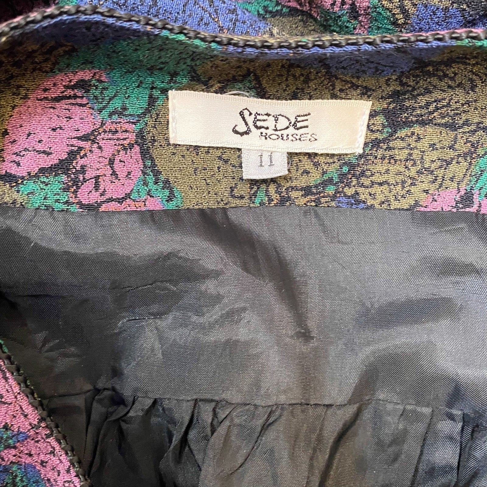 Sede Houses Maxi Dress Womens S Green Floral Square Neck Button Front Pleated