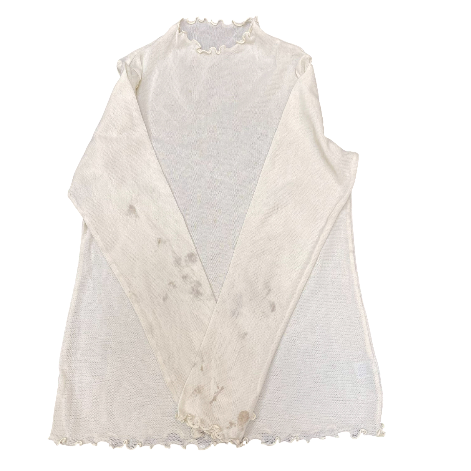 Sheer Mesh Top Womens M White Casual Long Sleeve Crew Neck Casual Outdoor
