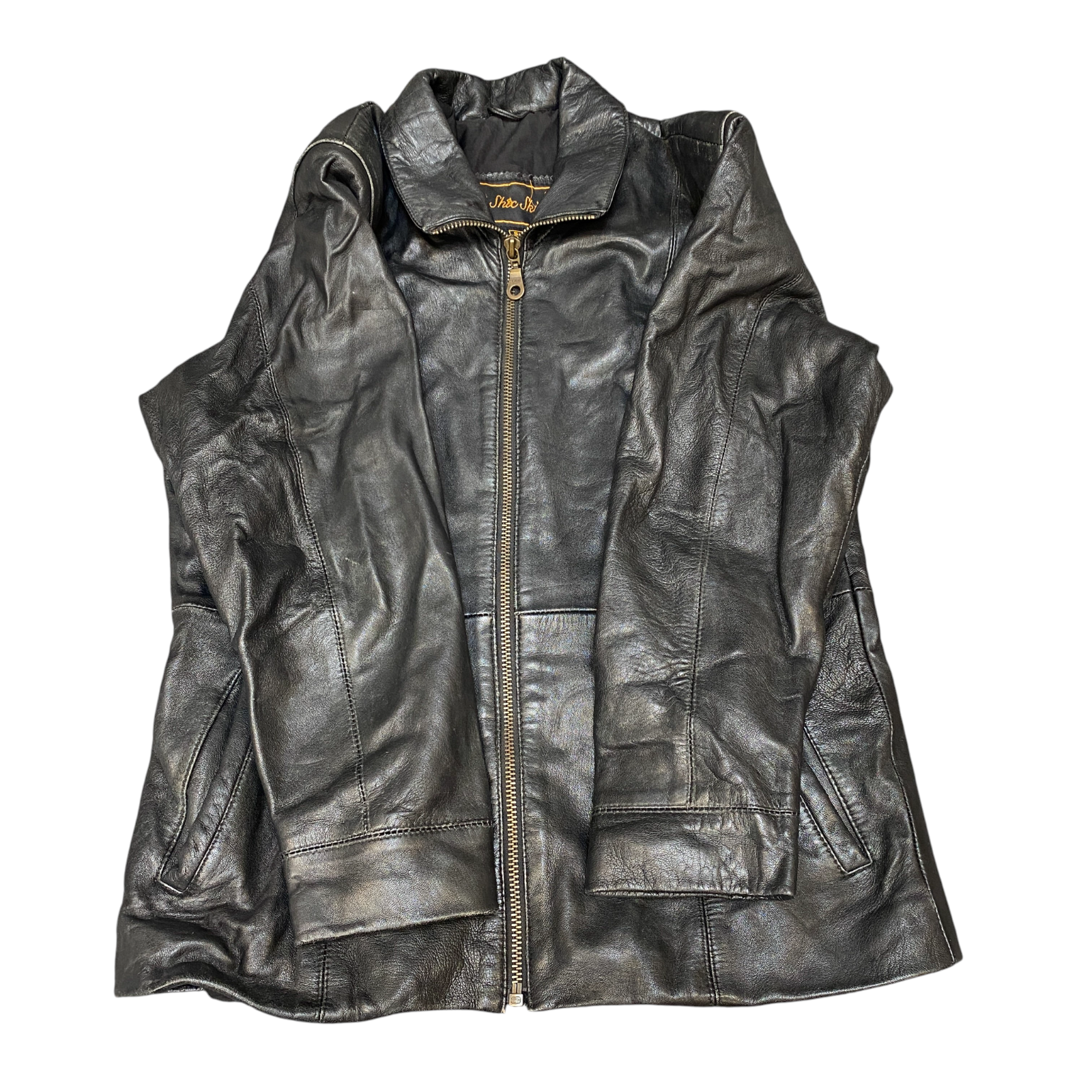 Shic Skinn Leather Jacket Womens Small Black Lined Long Sleeve Collared Full Zip