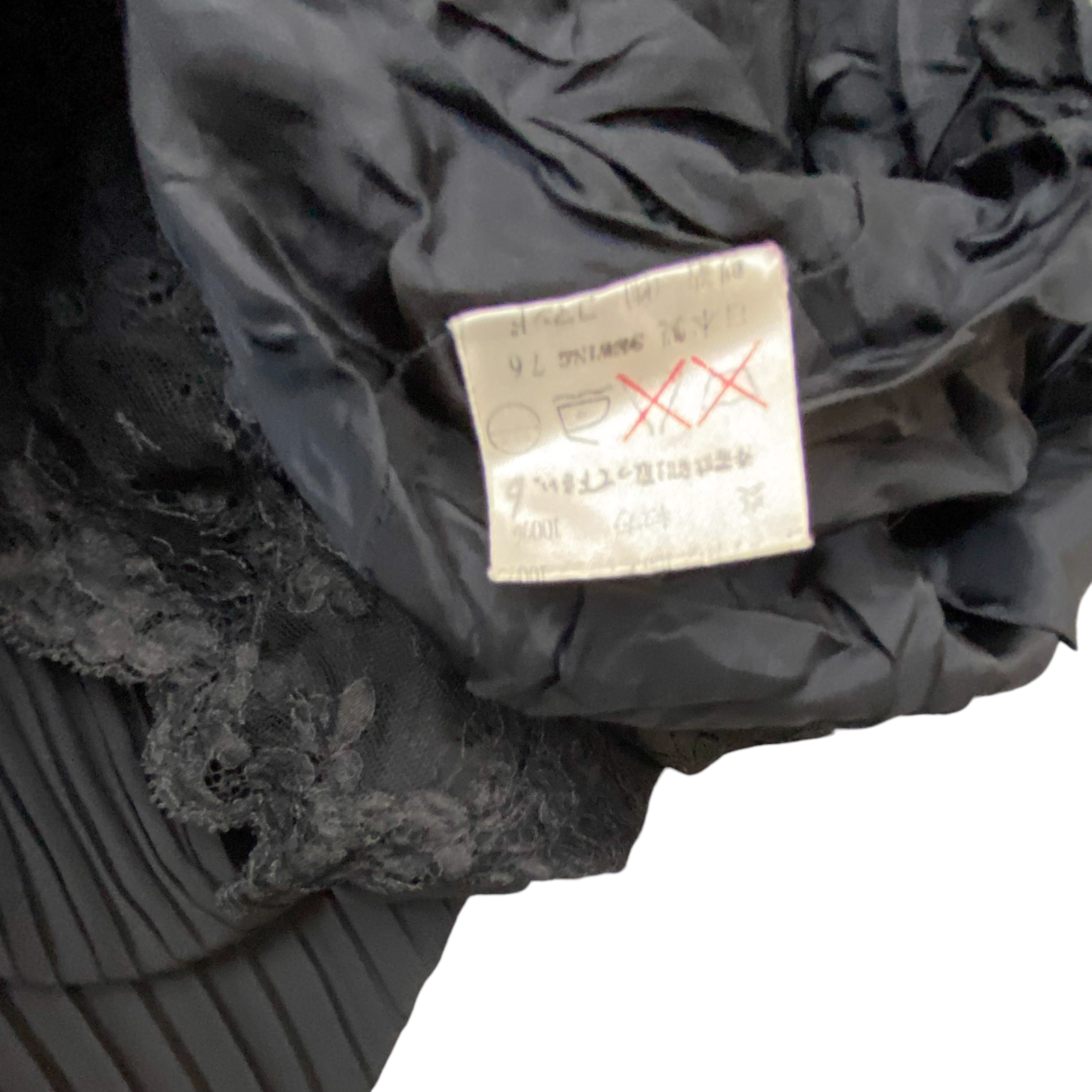 Shift Dress Womens M Black Pleat Midi Casual Short Sleeve Lace Trim Outdoor
