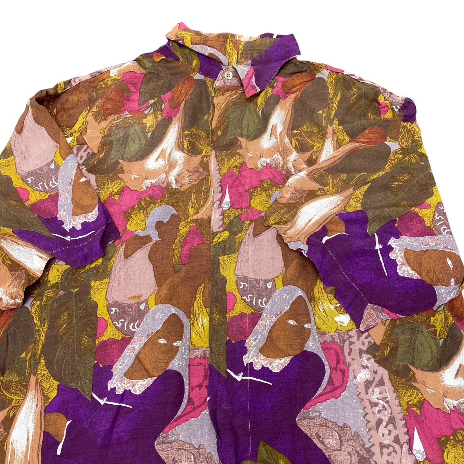 Shirt Mens XL Multi Abstract Floral Print Casual Short Sleeve Collared Button Up