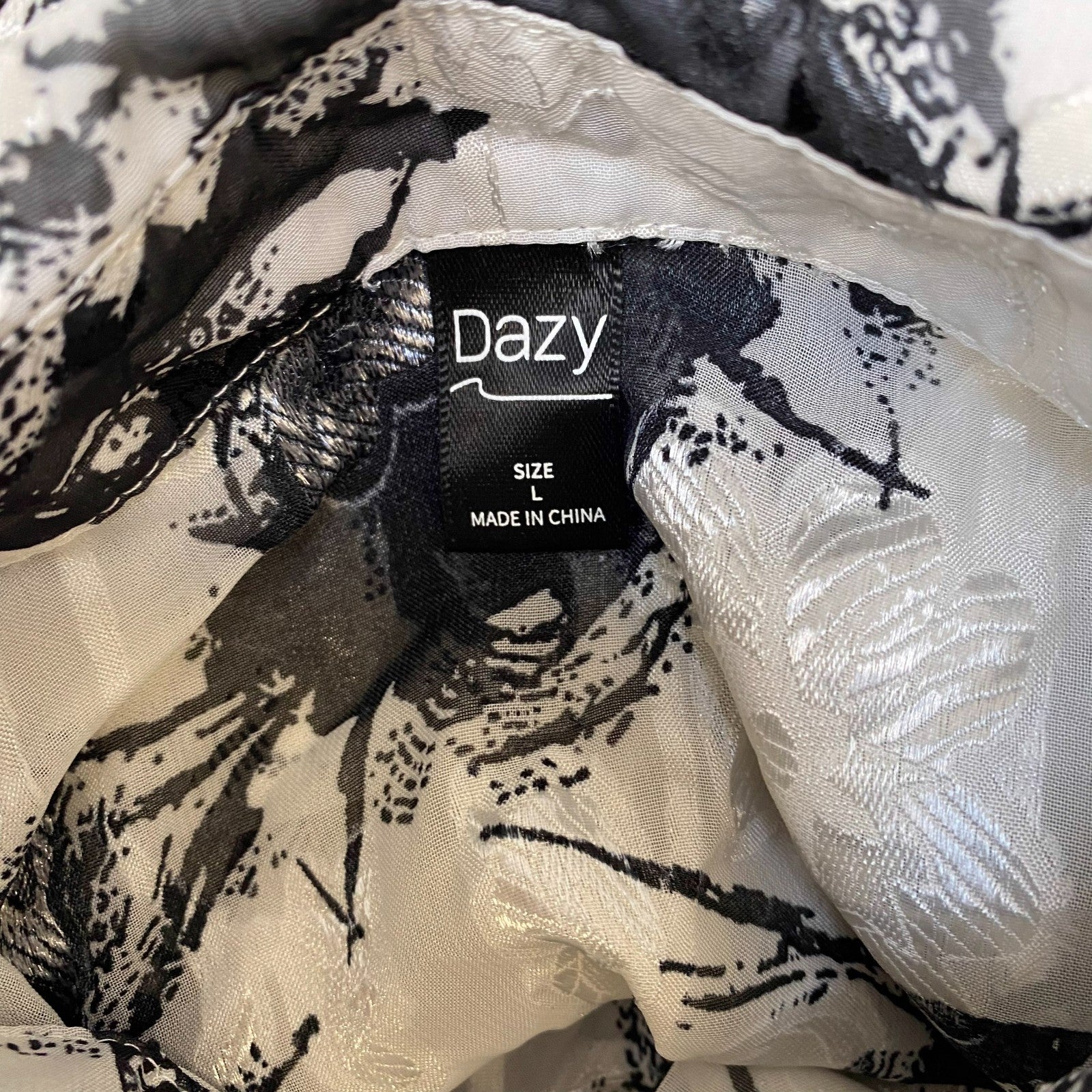 Shirt Top Womens L White Black Floral Long Sleeve Collared Button Down Outdoor