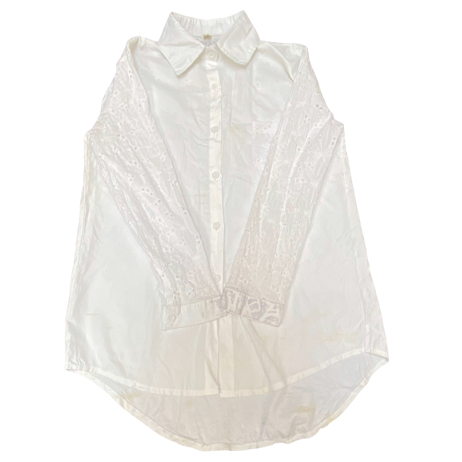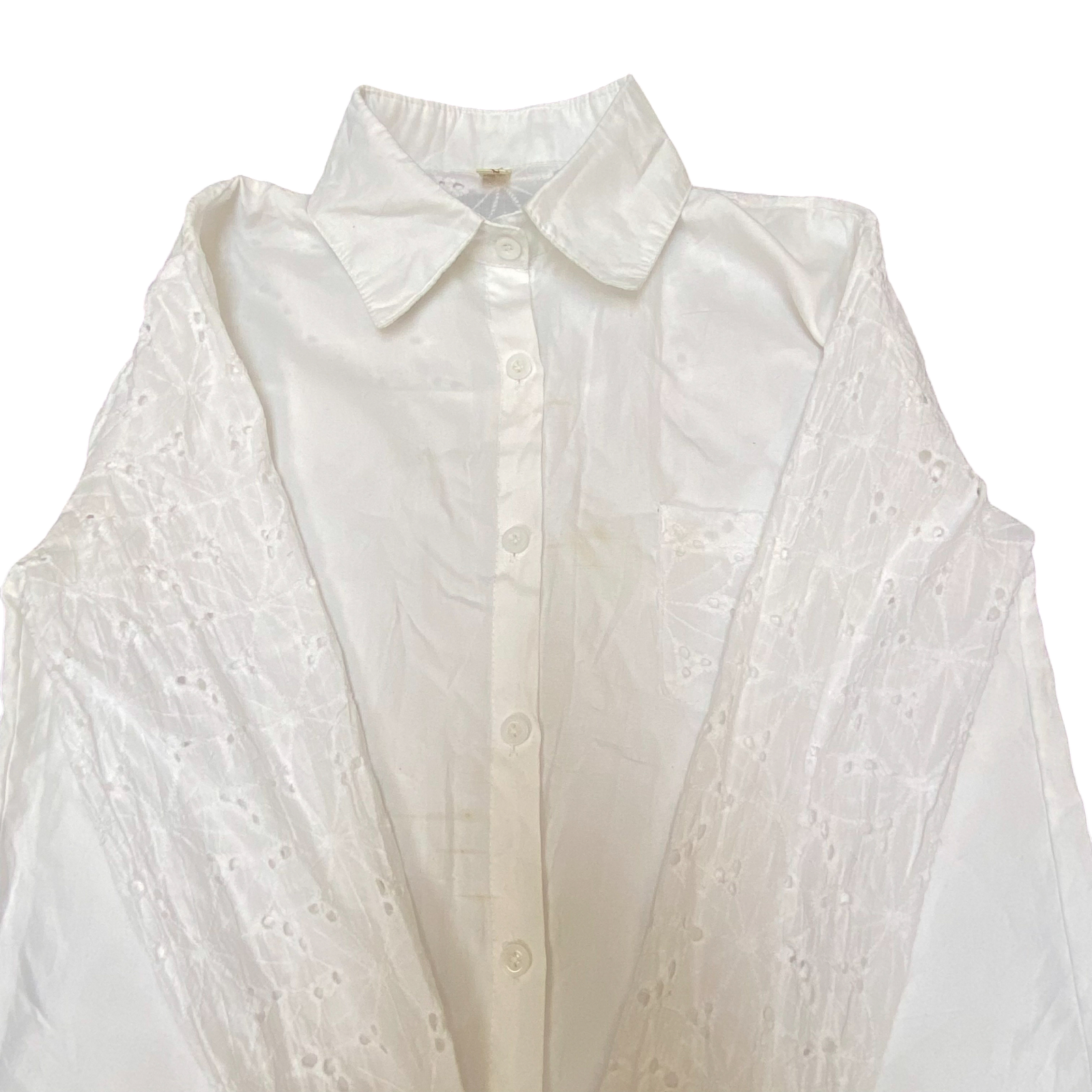 Shirt Top Womens L White Eyelet Floral Long Sleeve Collared Button Down Outdoor