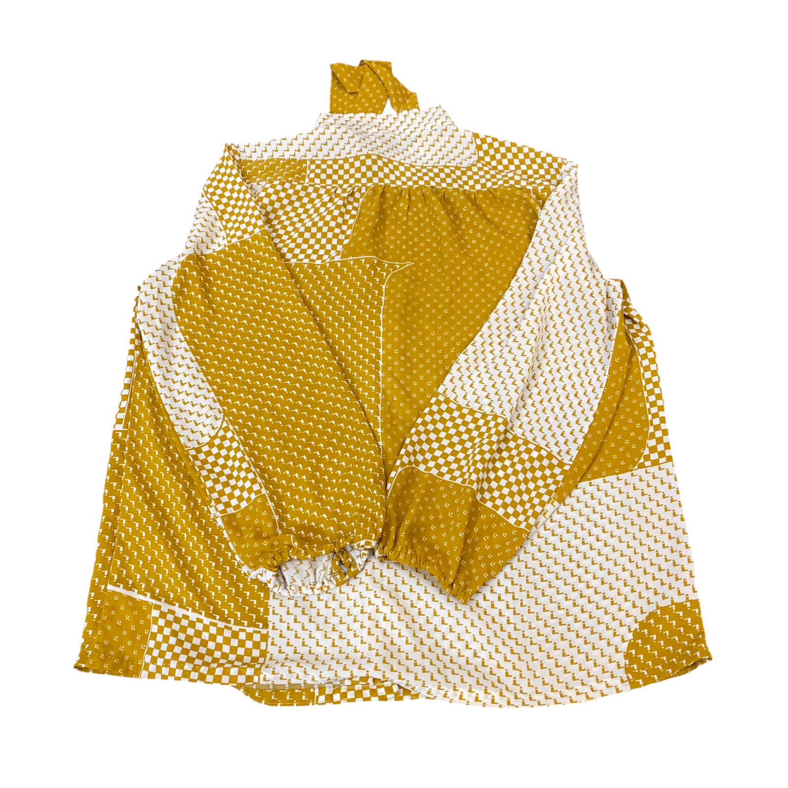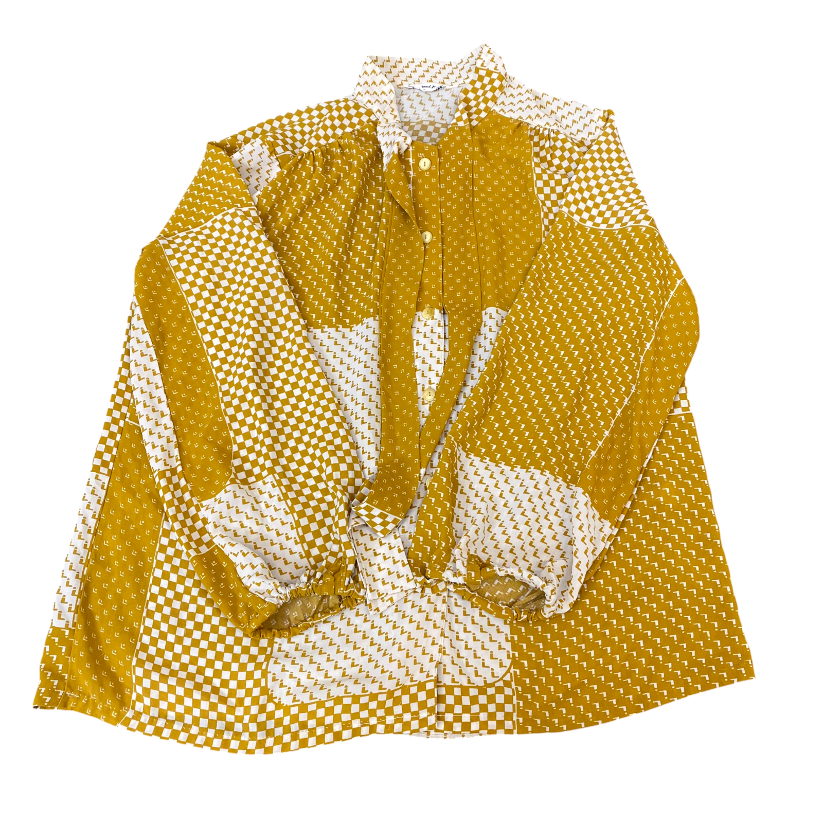 Shirt Top Womens M Brown White Geo Print Long Sleeve Button Front Casual Outdoor