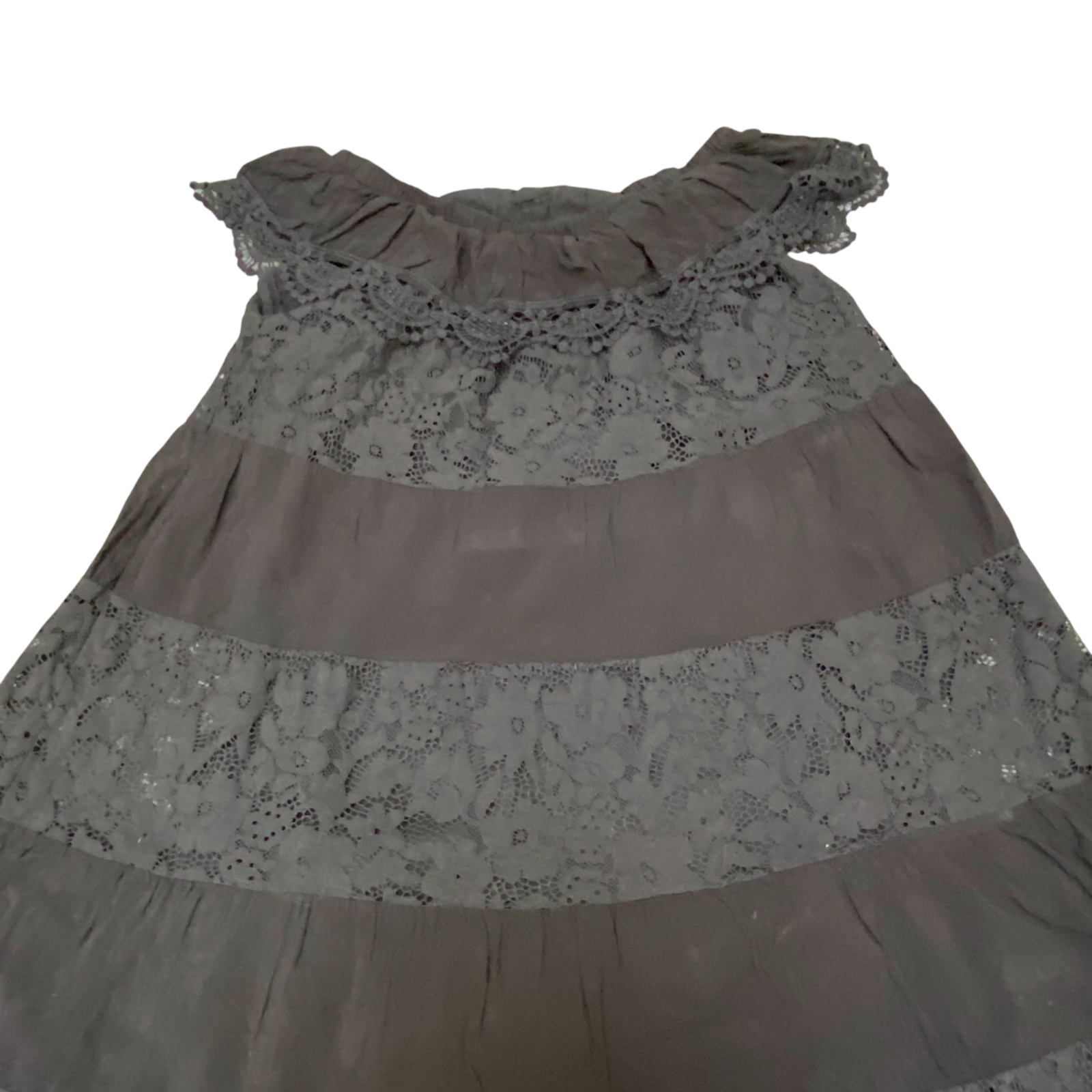 Short A-Line Dress Womens S Black Lace Casual Sleeveless Round Neck Pullover