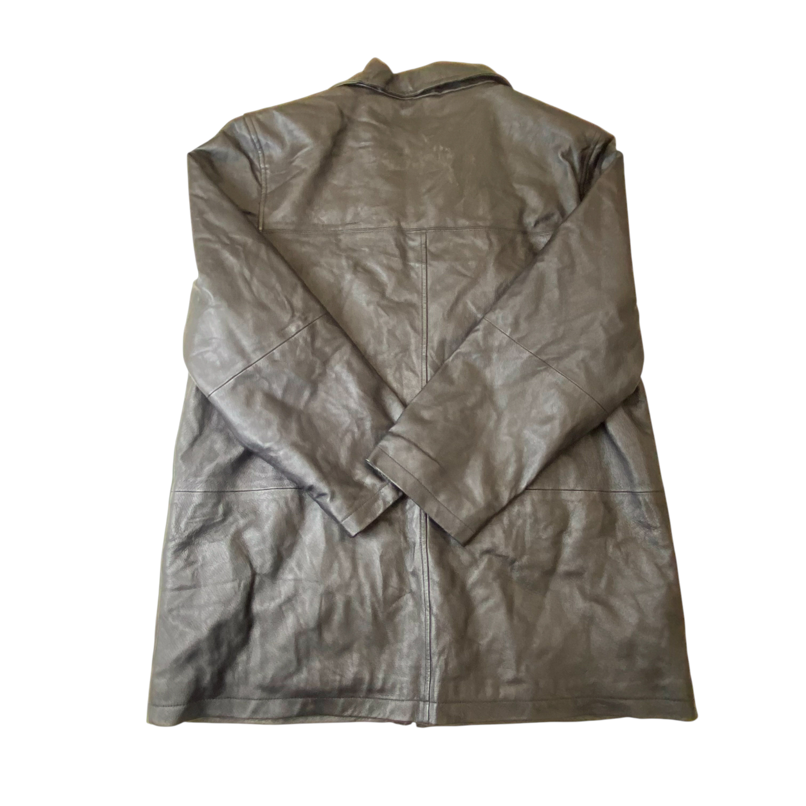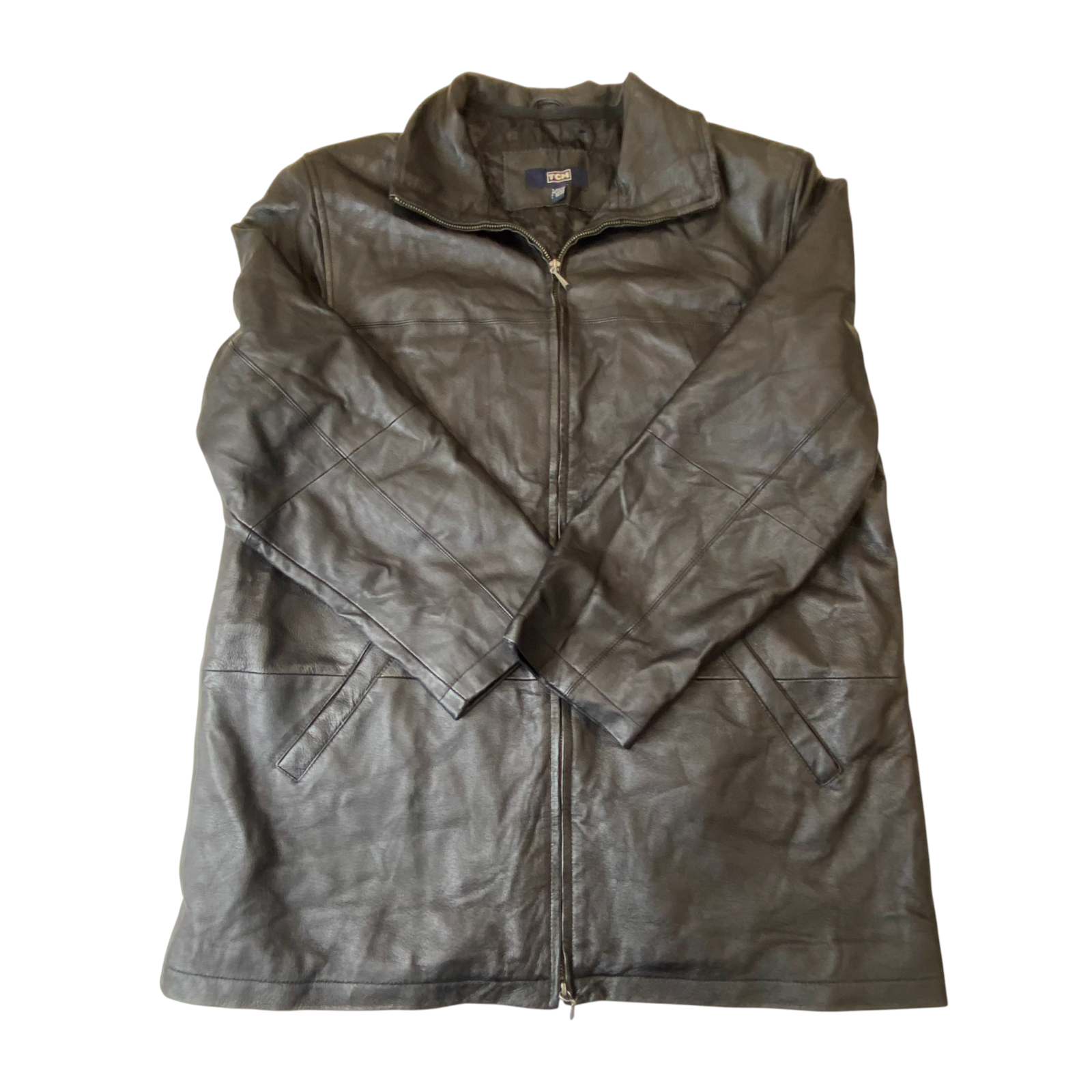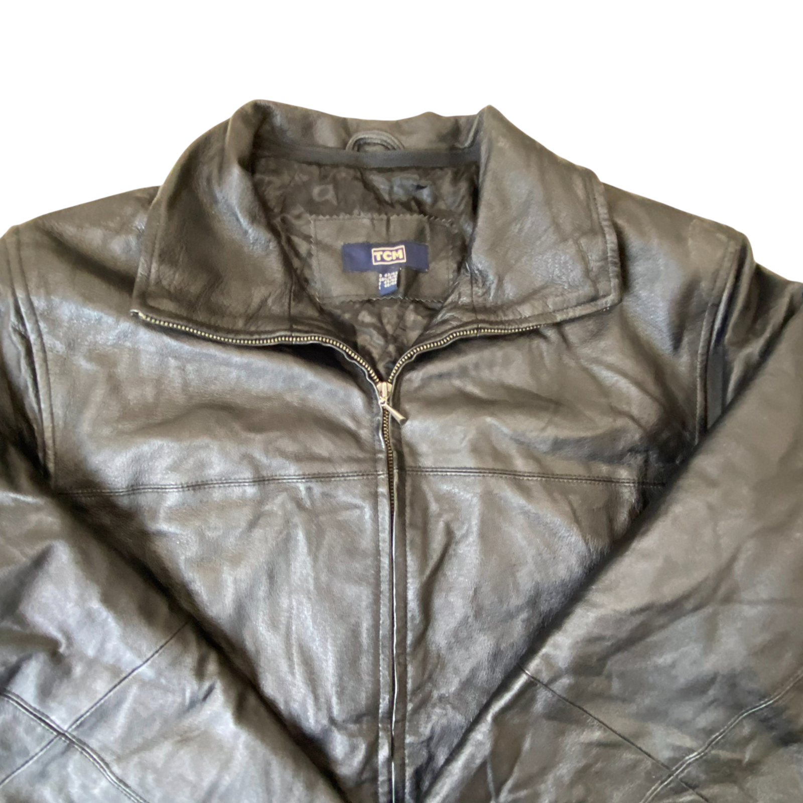 TCM Leather Jacket Mens Small Black Quilted Lined Long Sleeve Collared Full Zip