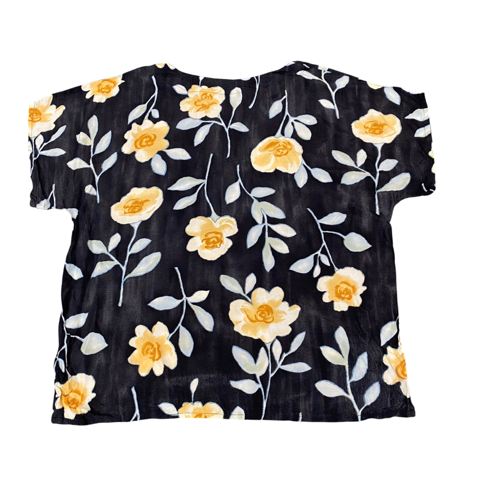 Tee Shirt Womens L Black Yellow Floral Short Sleeve Round Neck Casual Pullover