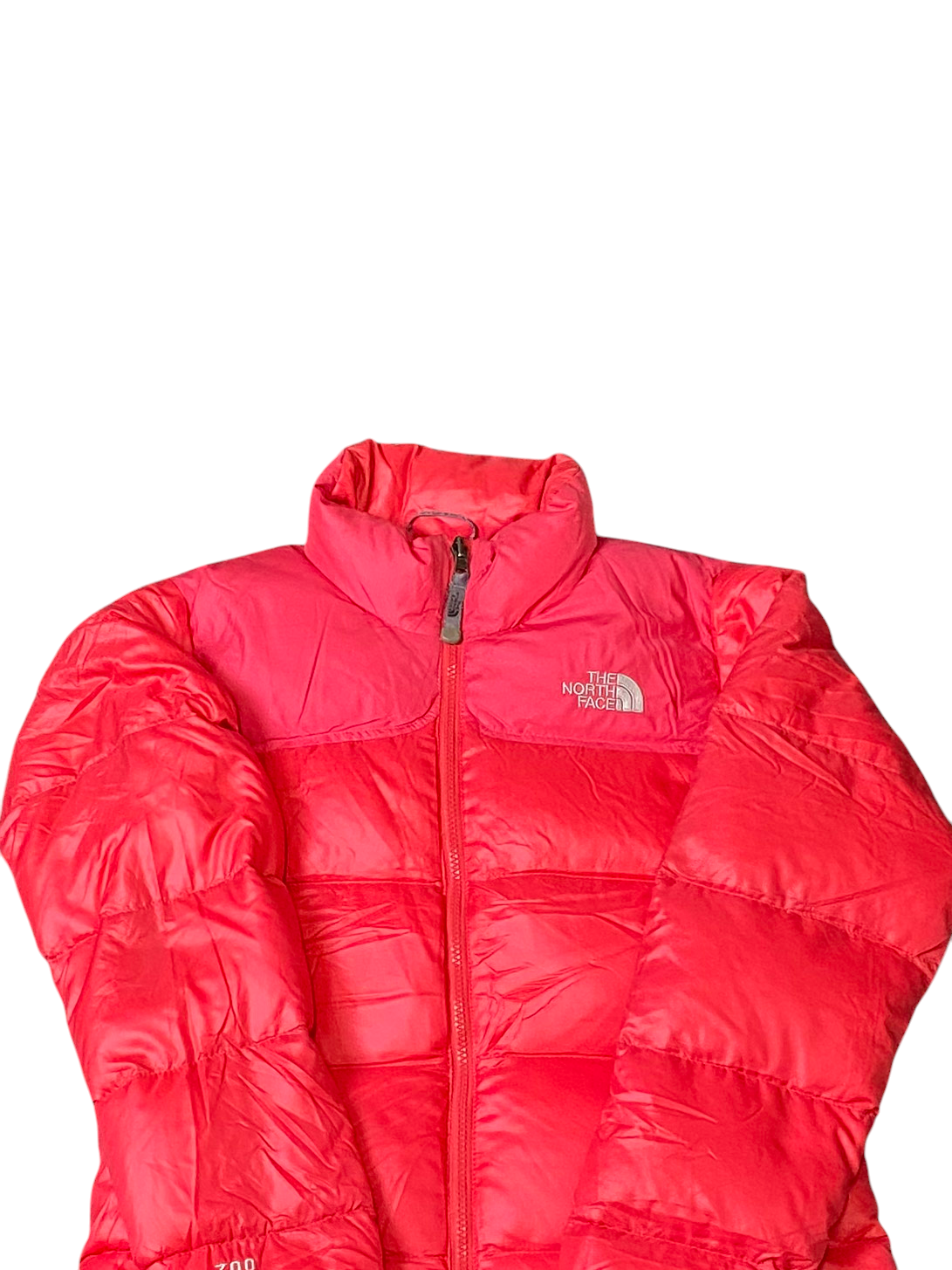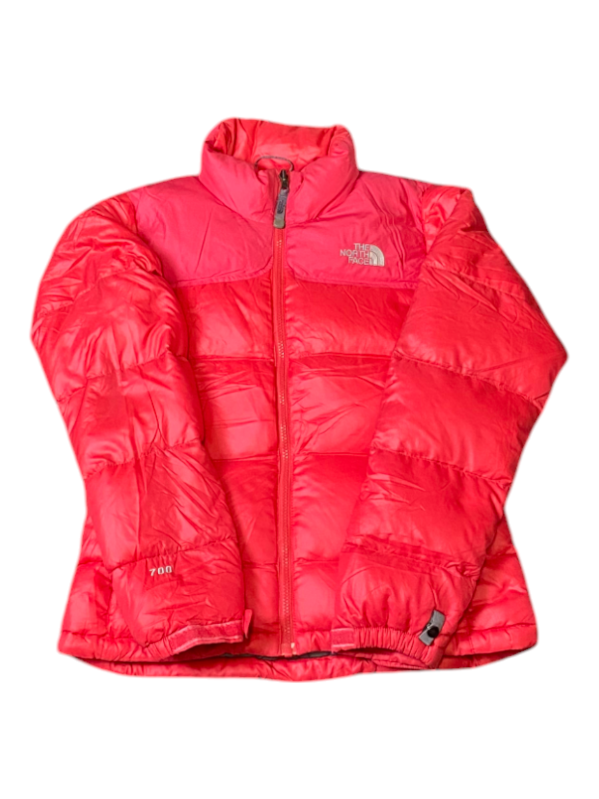 The North Face Nuptse 700 Down Puffer Jacket Womens M Red Pink Softshell Zip Up