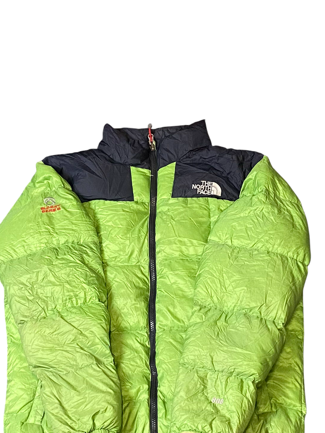 The North Face Nuptse 800 Down Puffer Jacket Mens M Green Black Softshell Zip Up