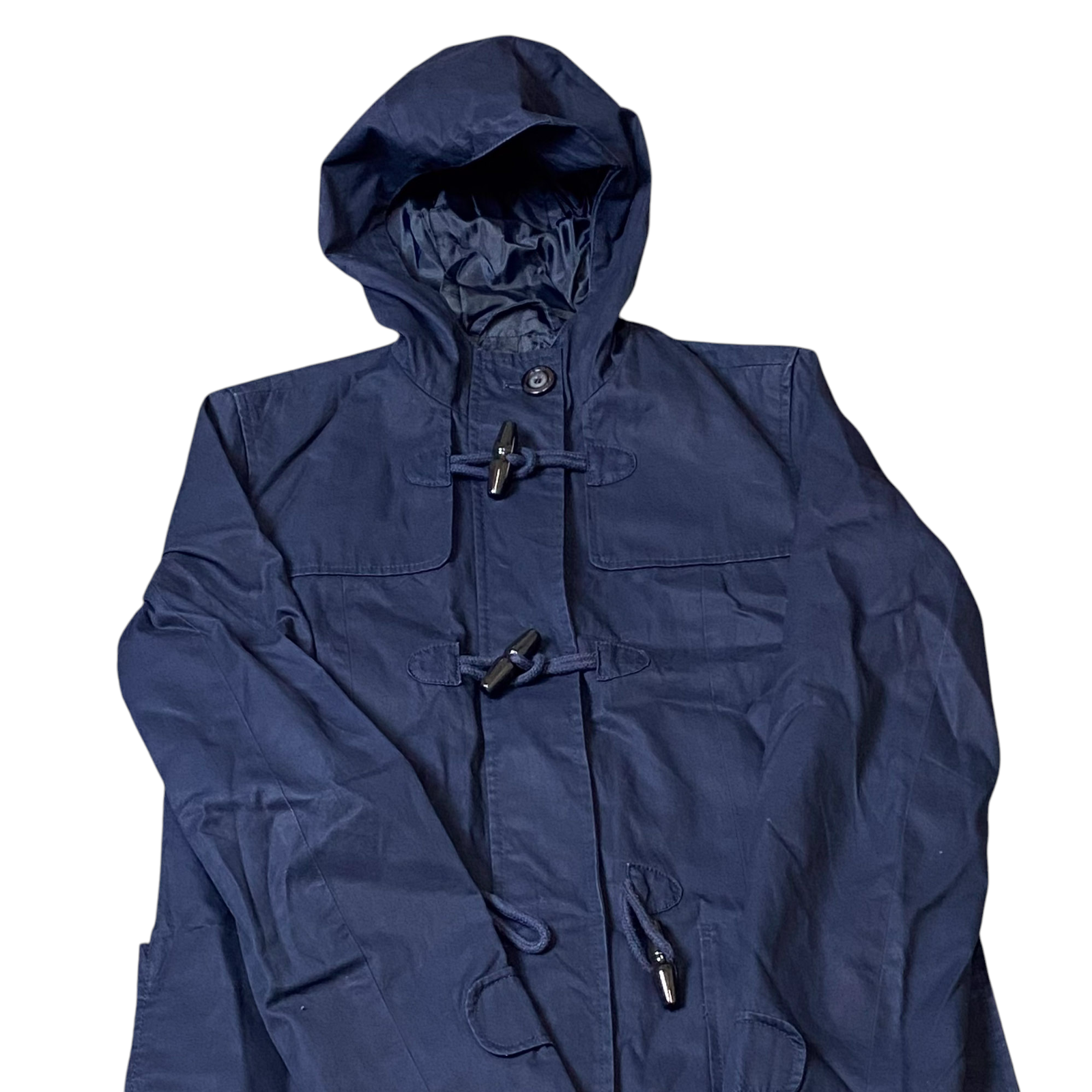 Tommy Hilfiger Duffle Coat Womens Small Blue Long Sleeve Hooded Toggle Front