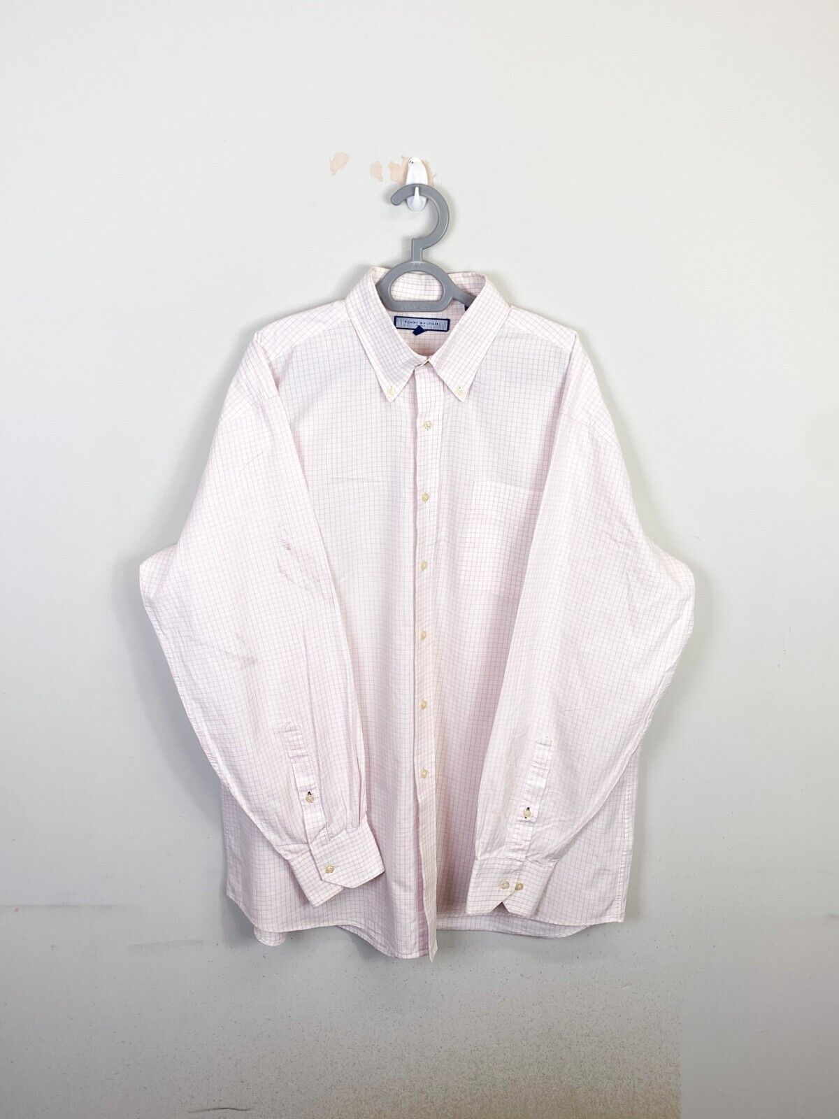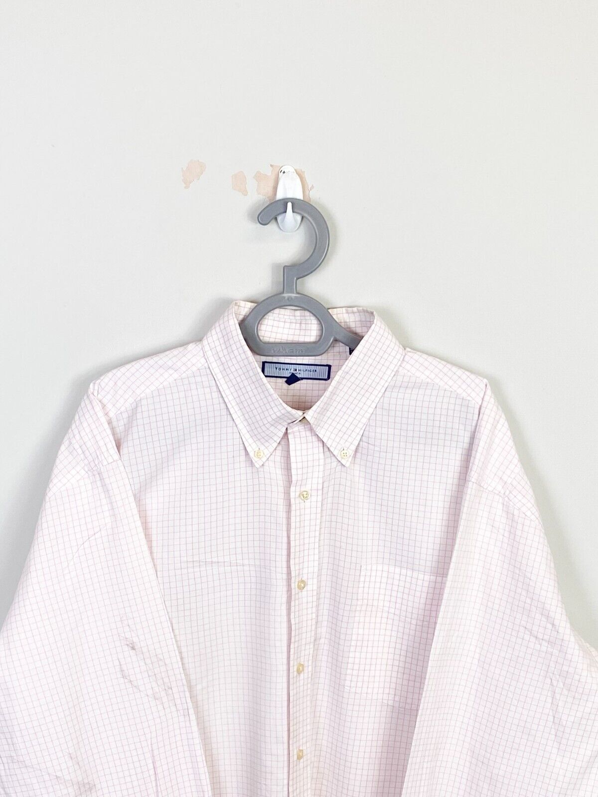 Tommy Hilfiger Shirt Men XL Pink Checkered Long Sleeve Collar Casual Button Down