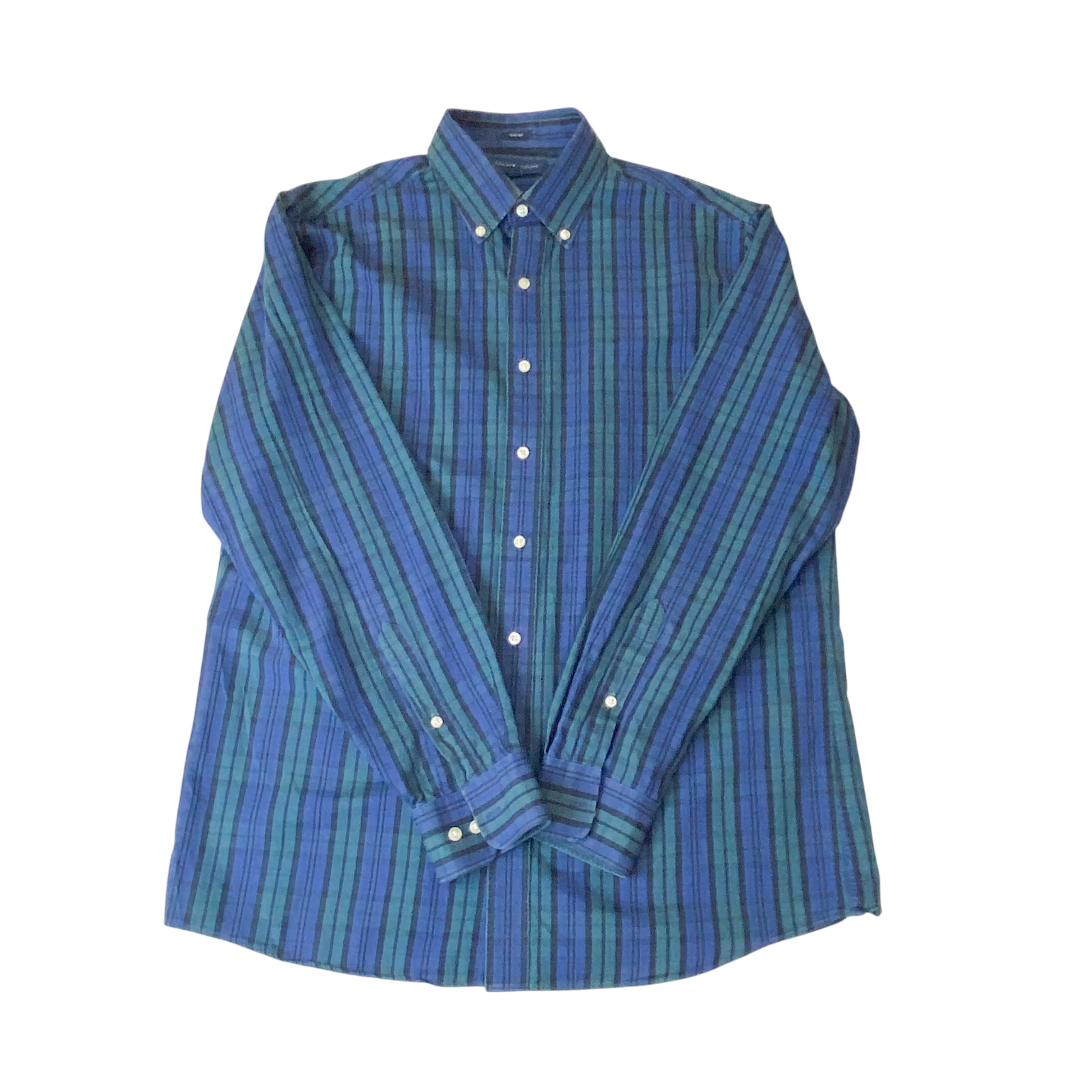 Tommy Hilfiger Shirt Mens M Blue Plaid Slim Fit Long Sleeve Collar Button Down