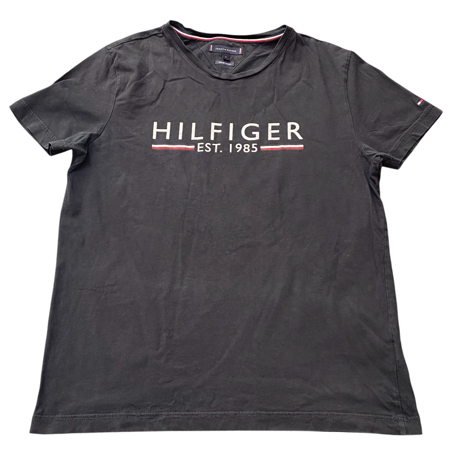 Tommy Hilfiger T Shirt Mens L Black Cotton Short Sleeve Spellout Crew Neck Tee