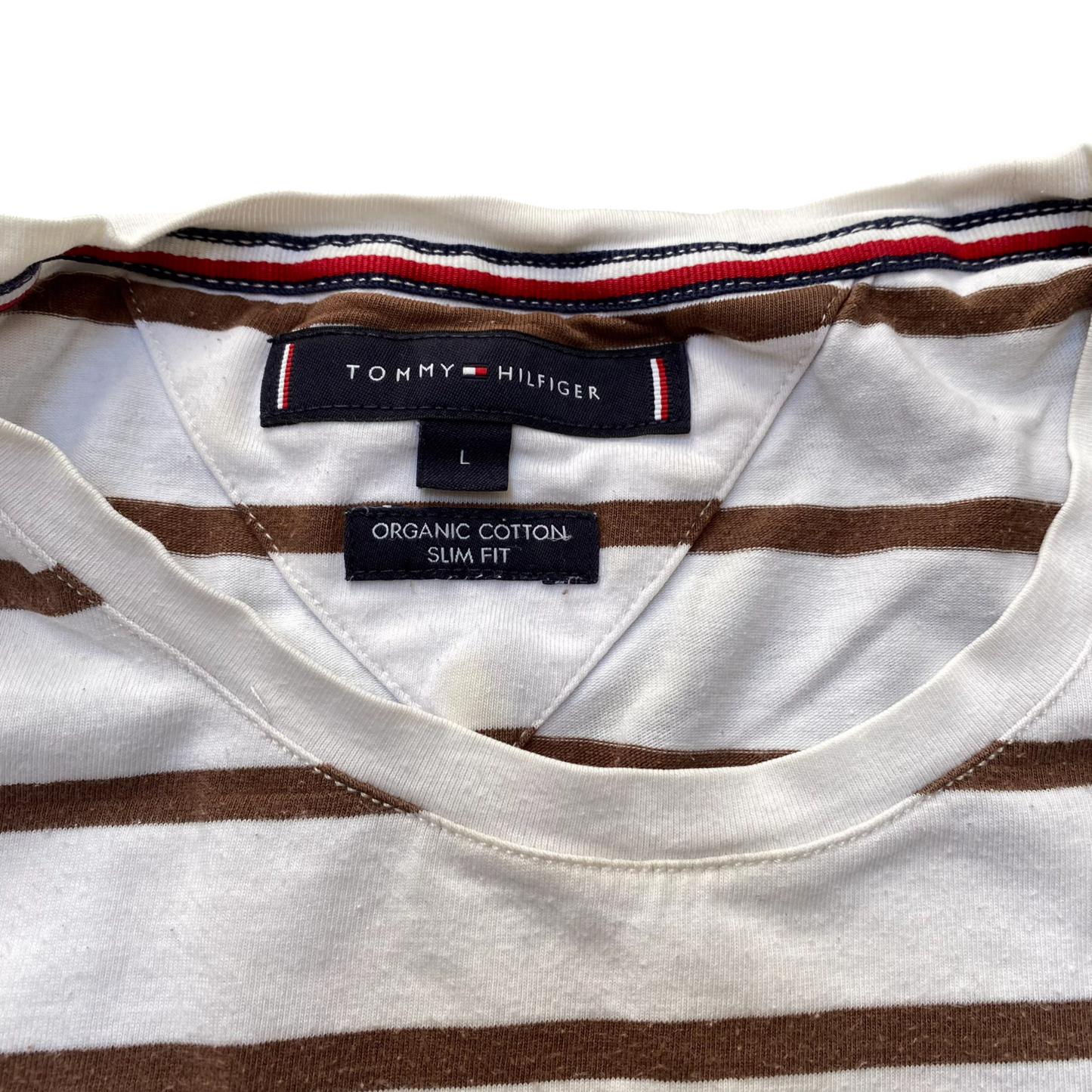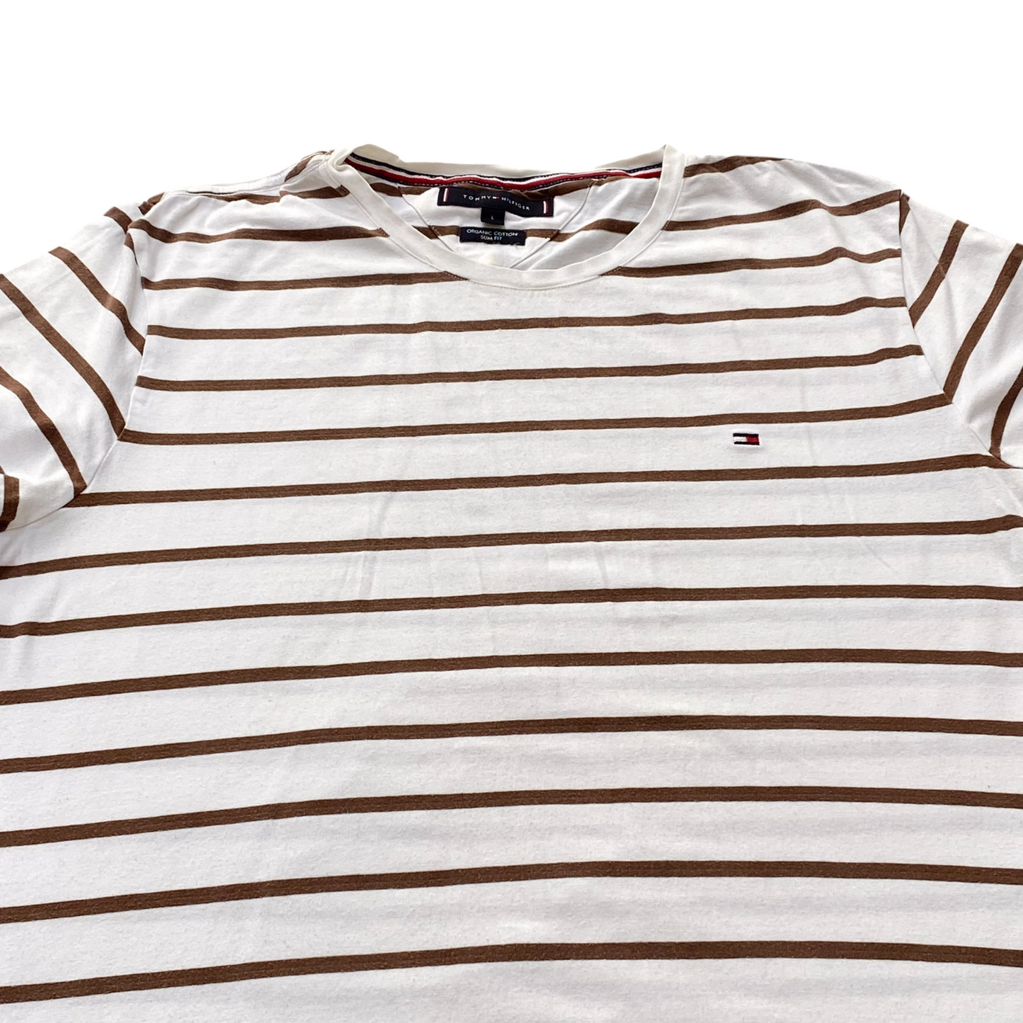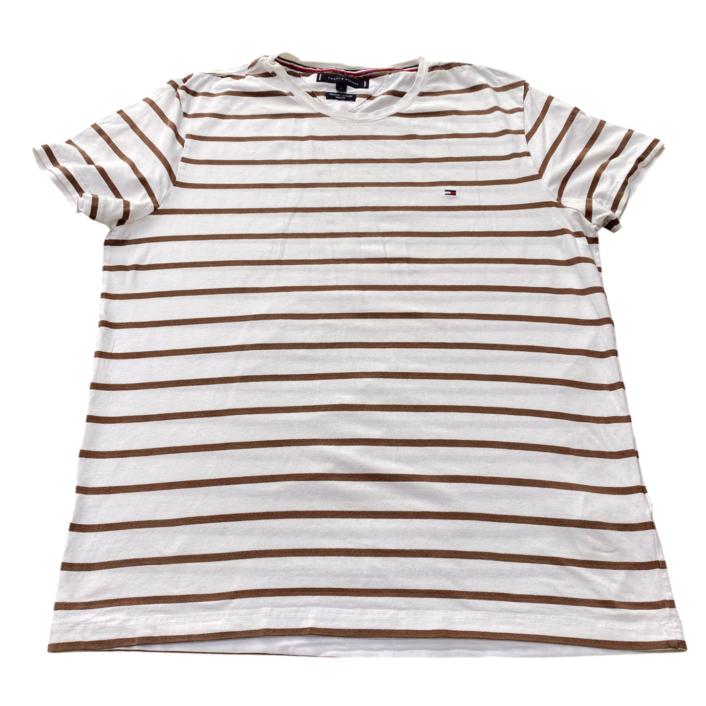 Tommy Hilfiger T-Shirt Womens L White Stripe Short Sleeve Slim Cody Crewneck Tee