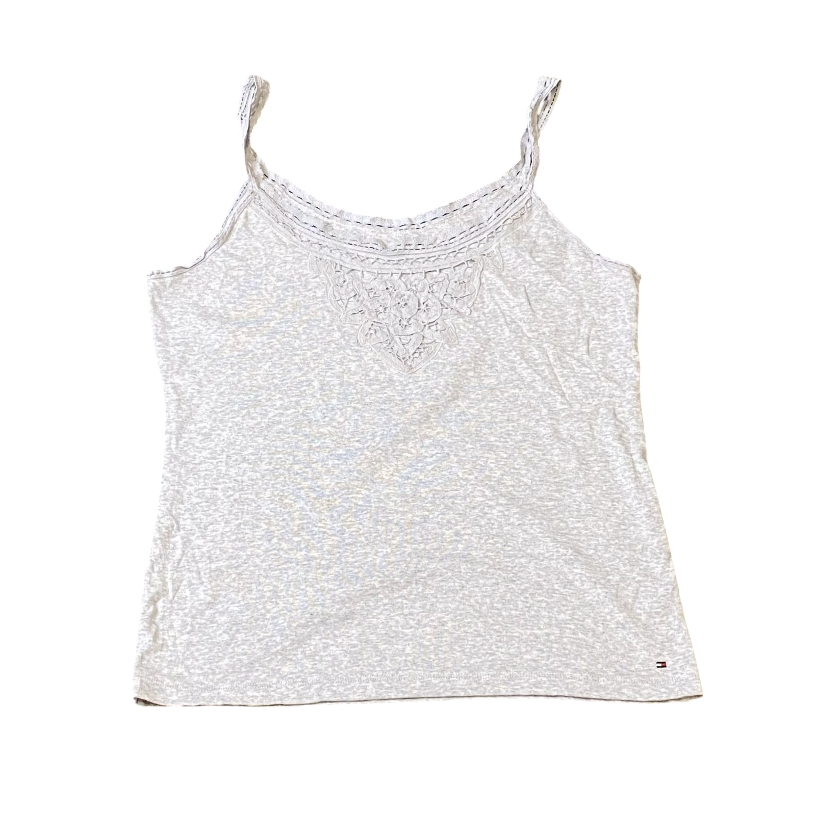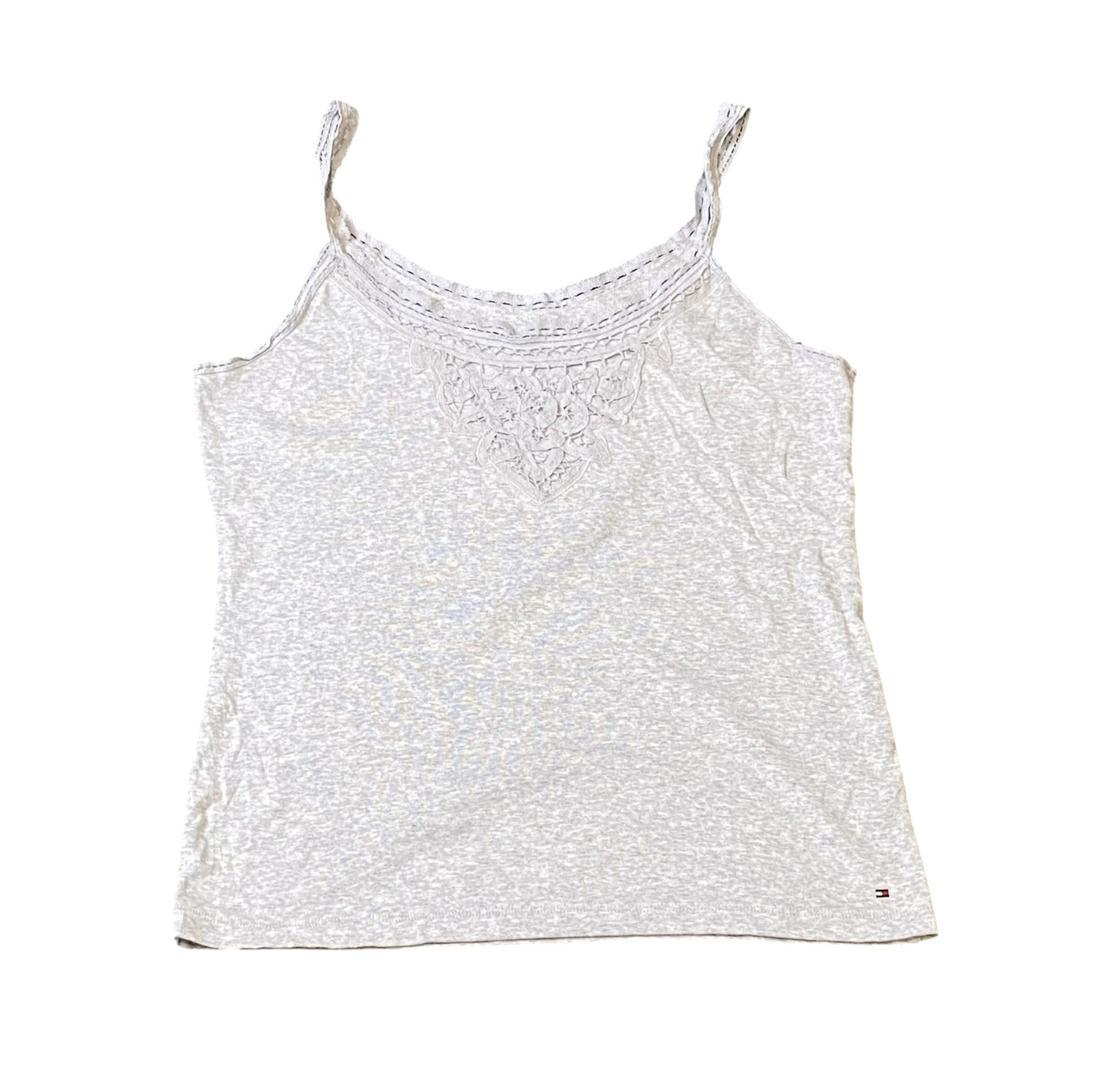 Tommy Hilfiger Tank Top Womens XL Grey Sleeveless Oatmeal Lace Trim Pullover