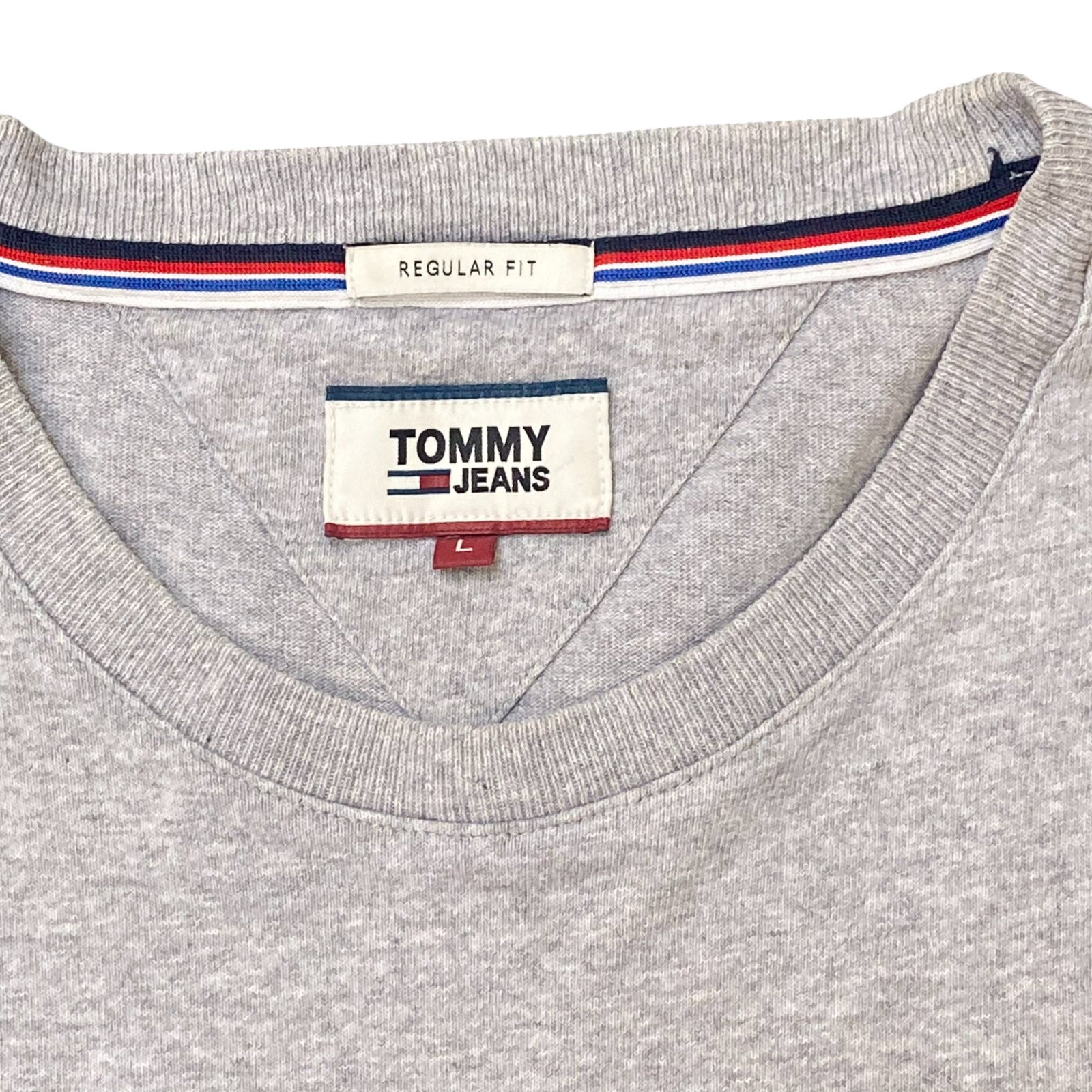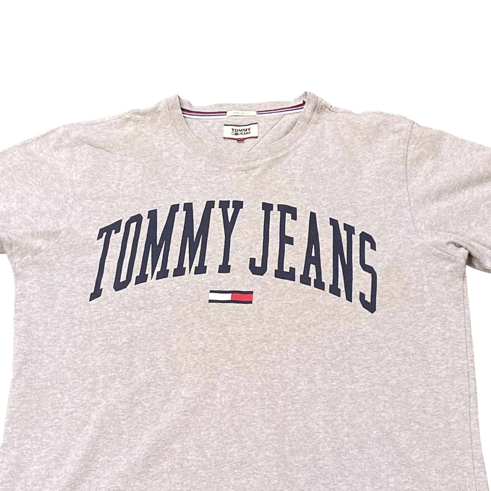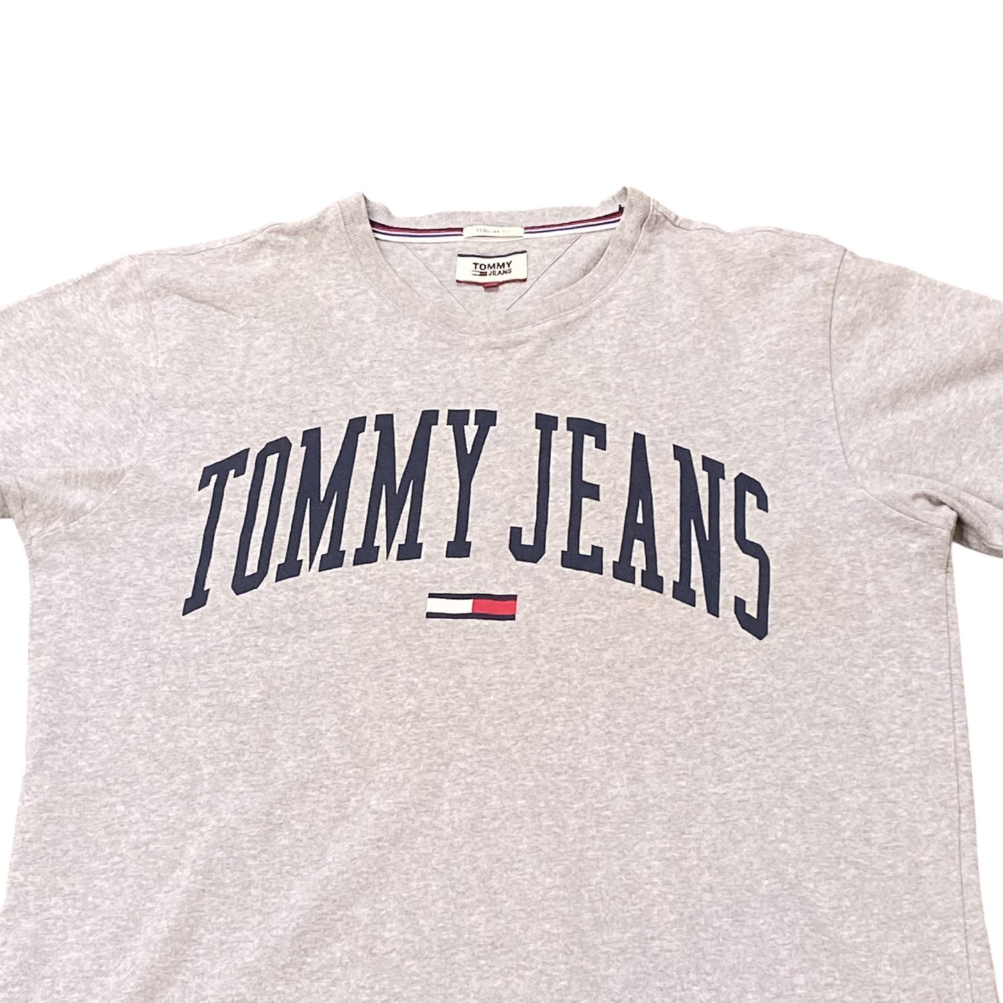 Tommy Jeans T Shirt Mens L Grey Heather Regular Fit Short Sleeve Spellout Tee