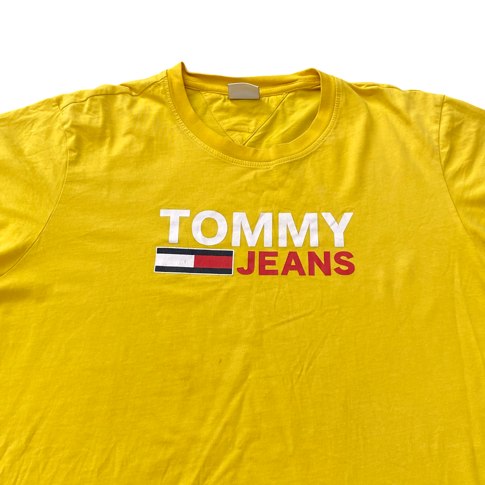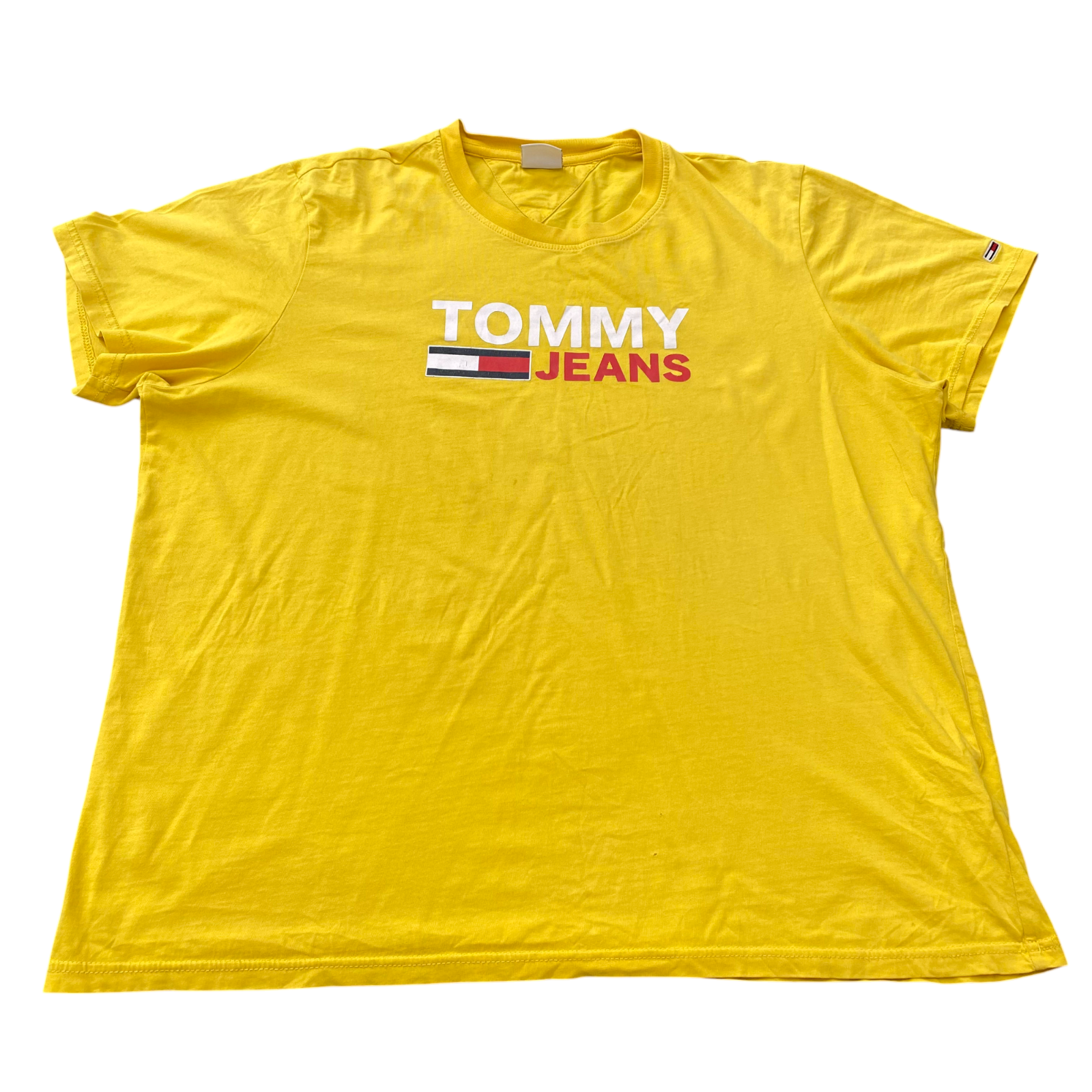 Tommy Jeans T Shirt Womens XXL Yellow Spellout Logo Short Sleeve Crew Neck Tee