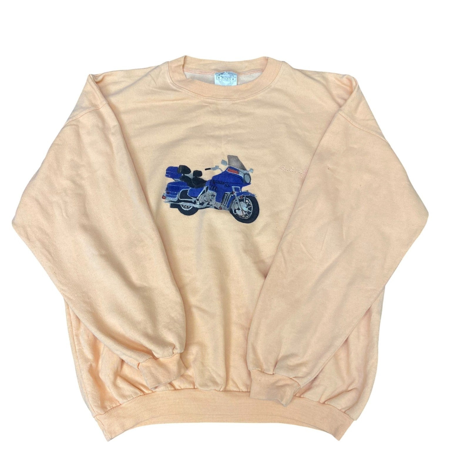 Toxo Sweatshirt Mens Large Yellow Motorcycle Print Long Raglan Sleeve Pullover