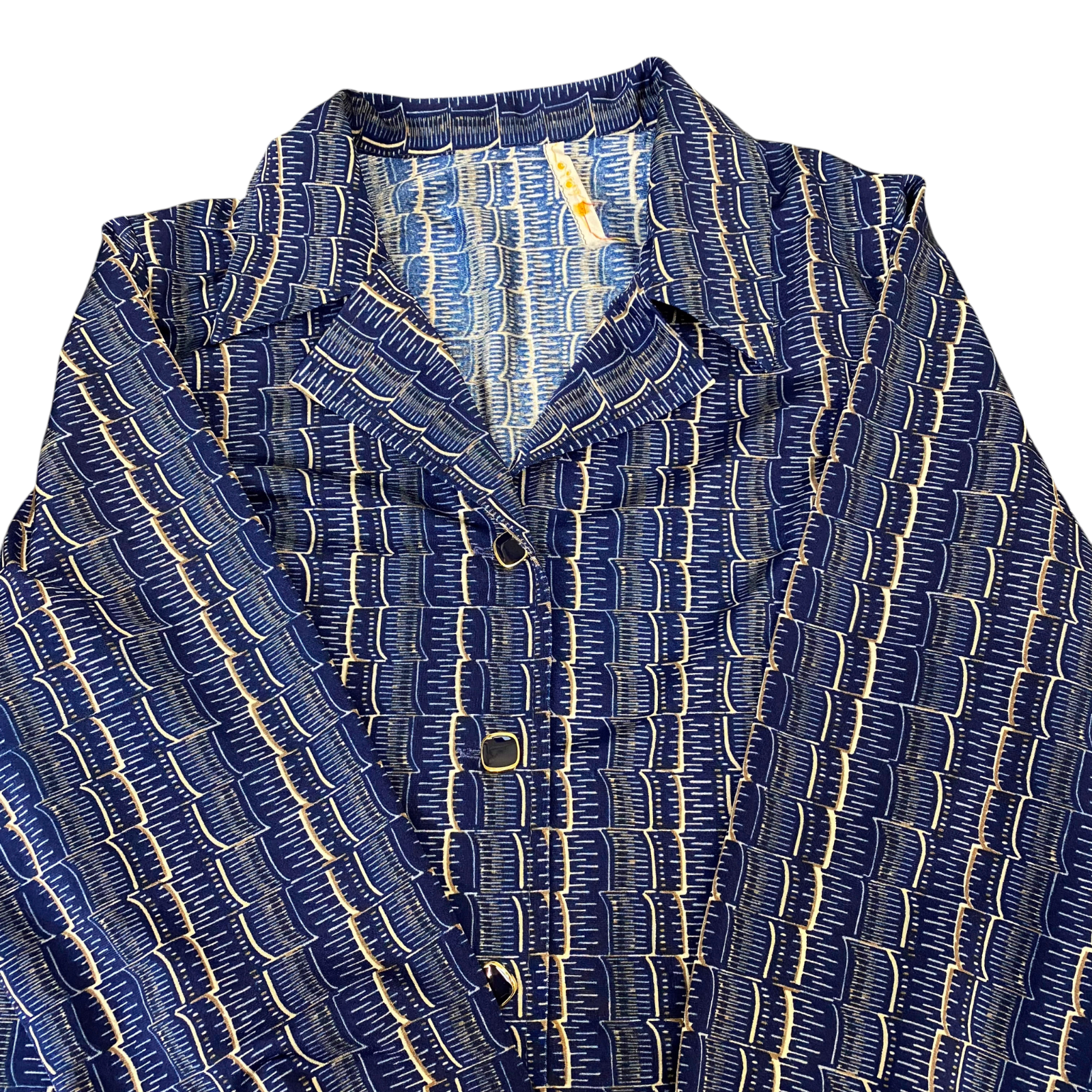 Toyo Button Up Shirt Womens M Blue Geometric Camp Collar Long Sleeve Button Up