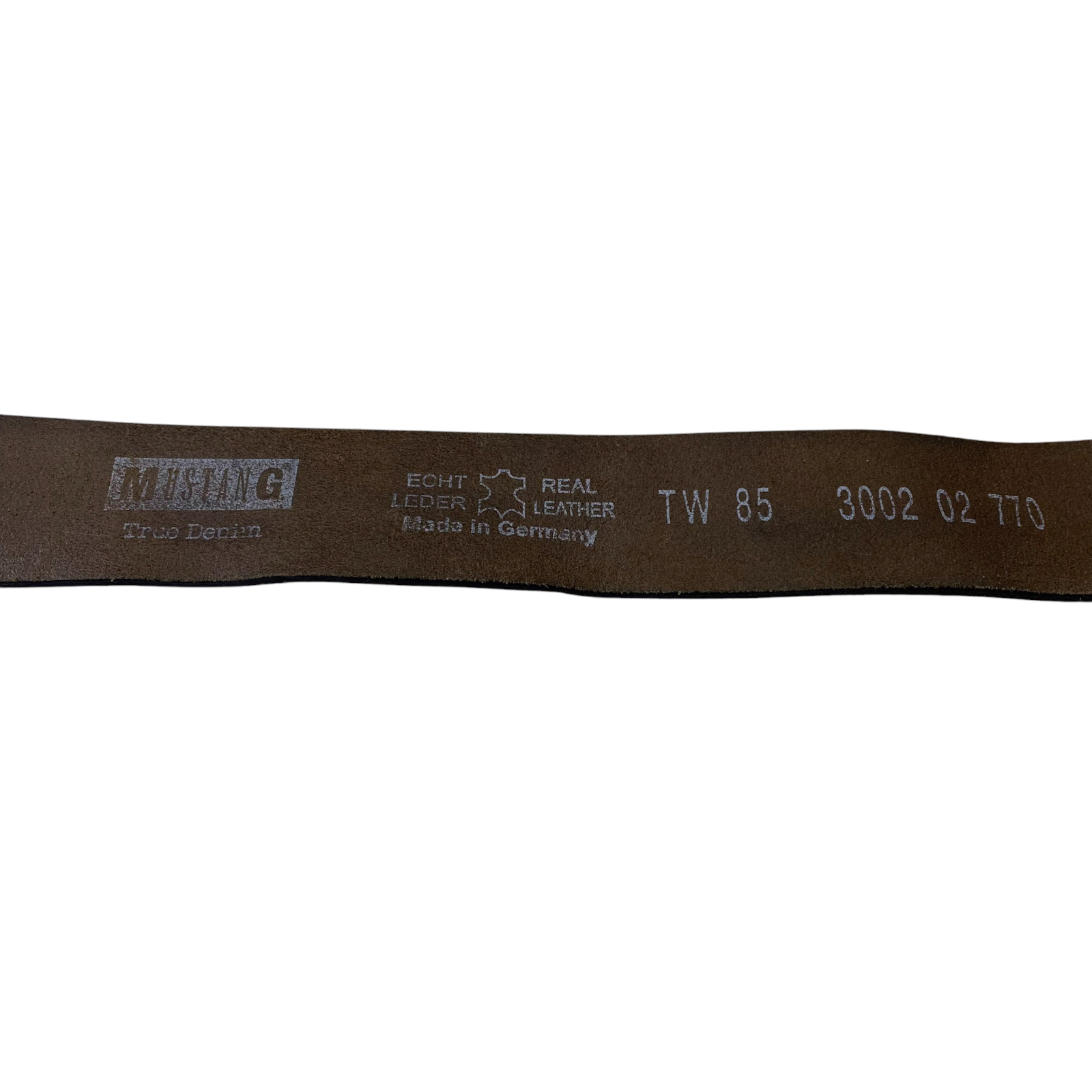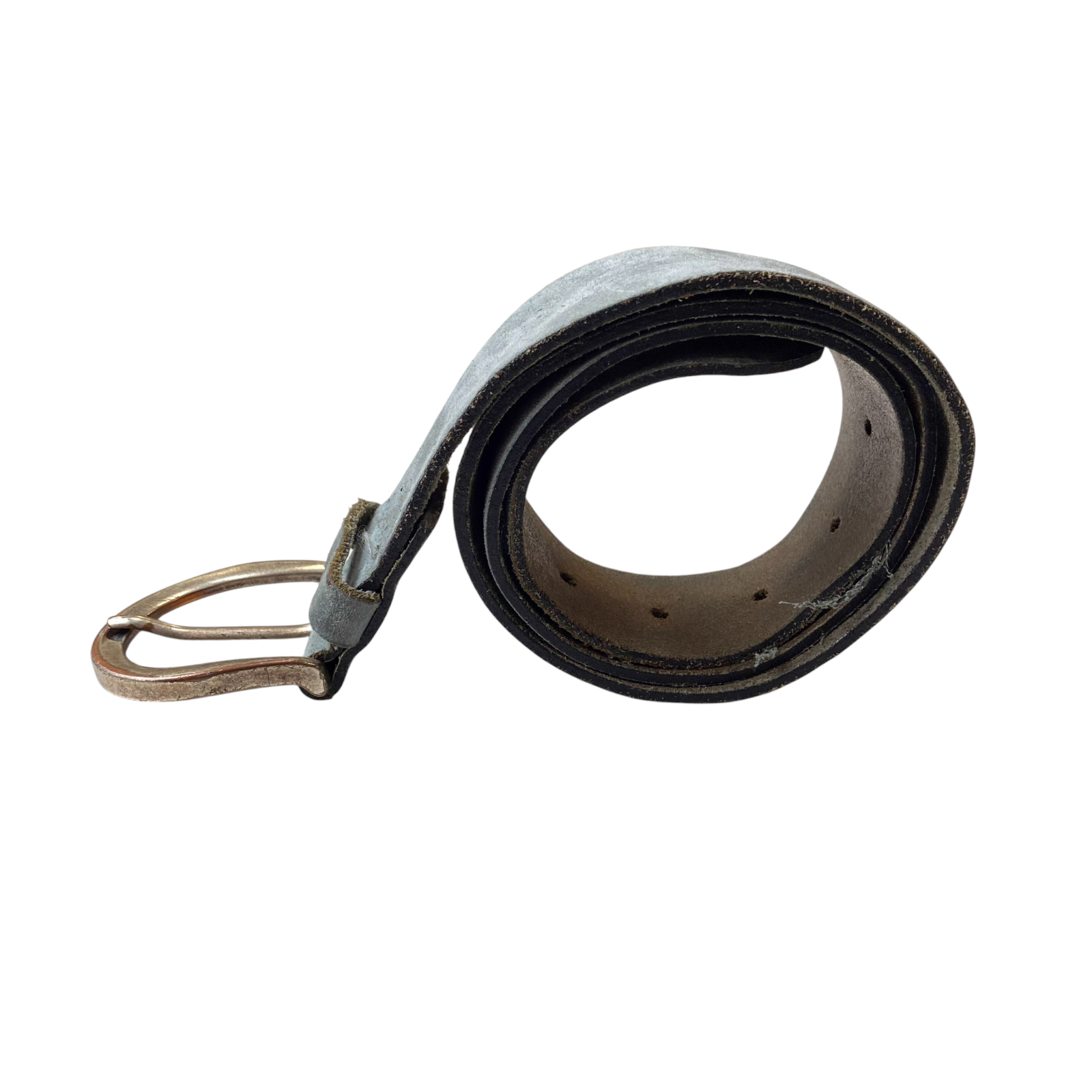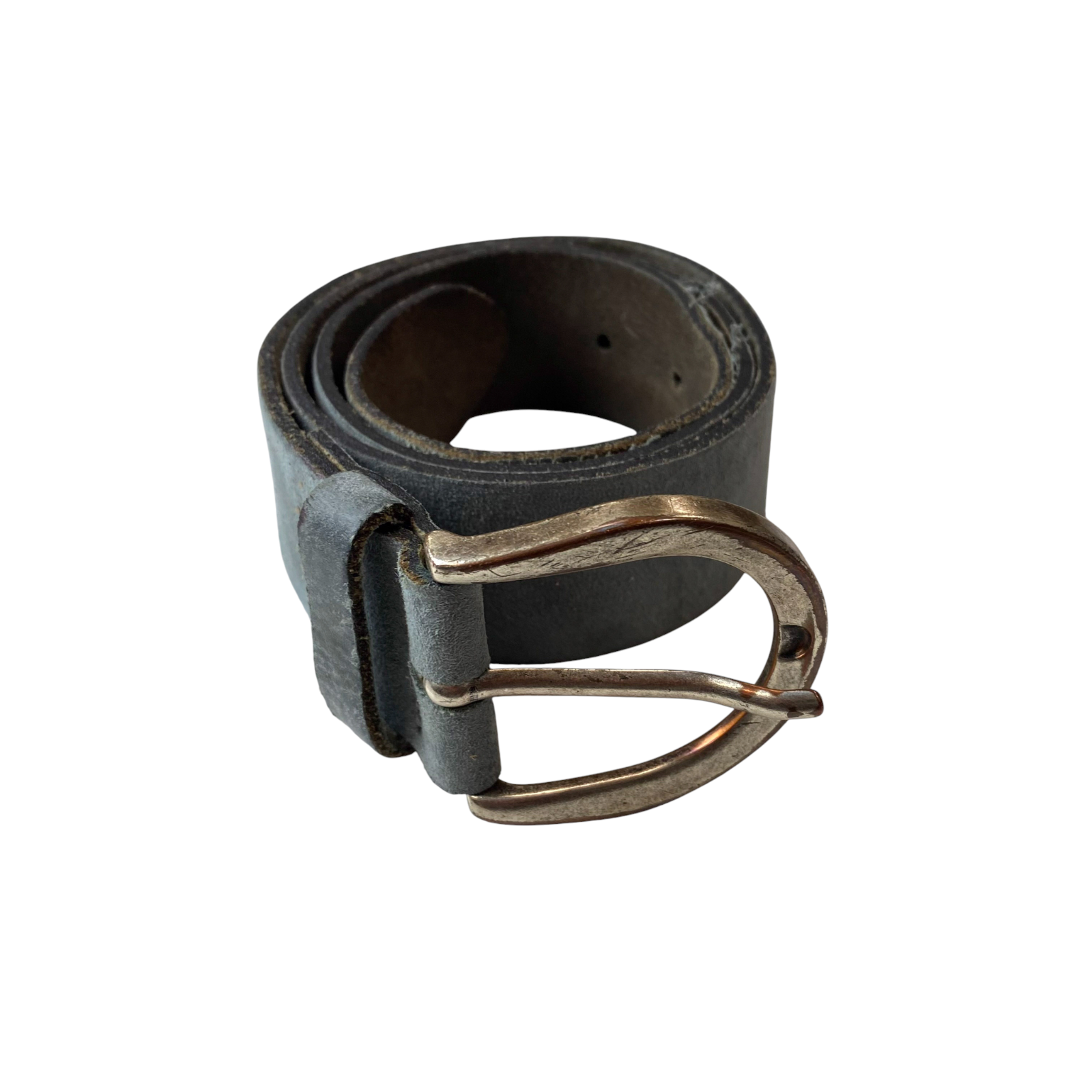 True Denim Mens Waist Belt Black Leather Adjustable Silver D-Buckle Size 37 in