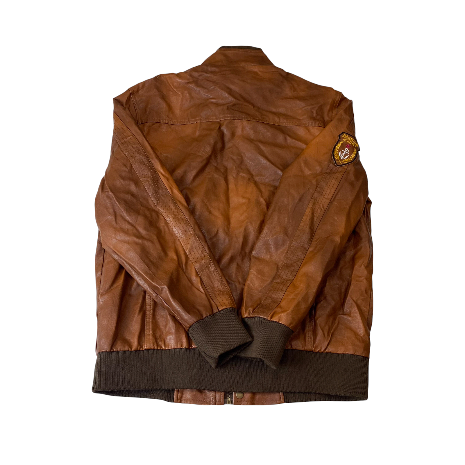 U.S. Army Jacket Mens M Brown Genuine Leather Detailed Pockets Long Sleeve