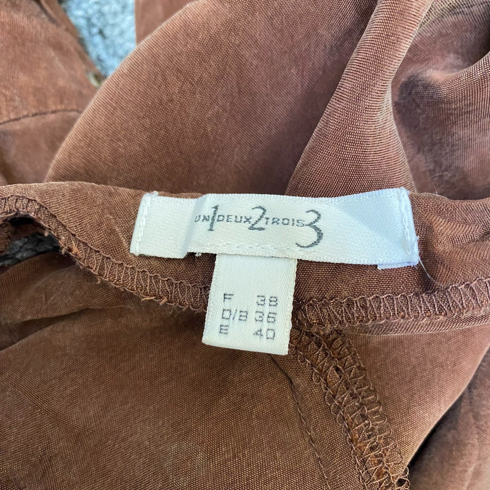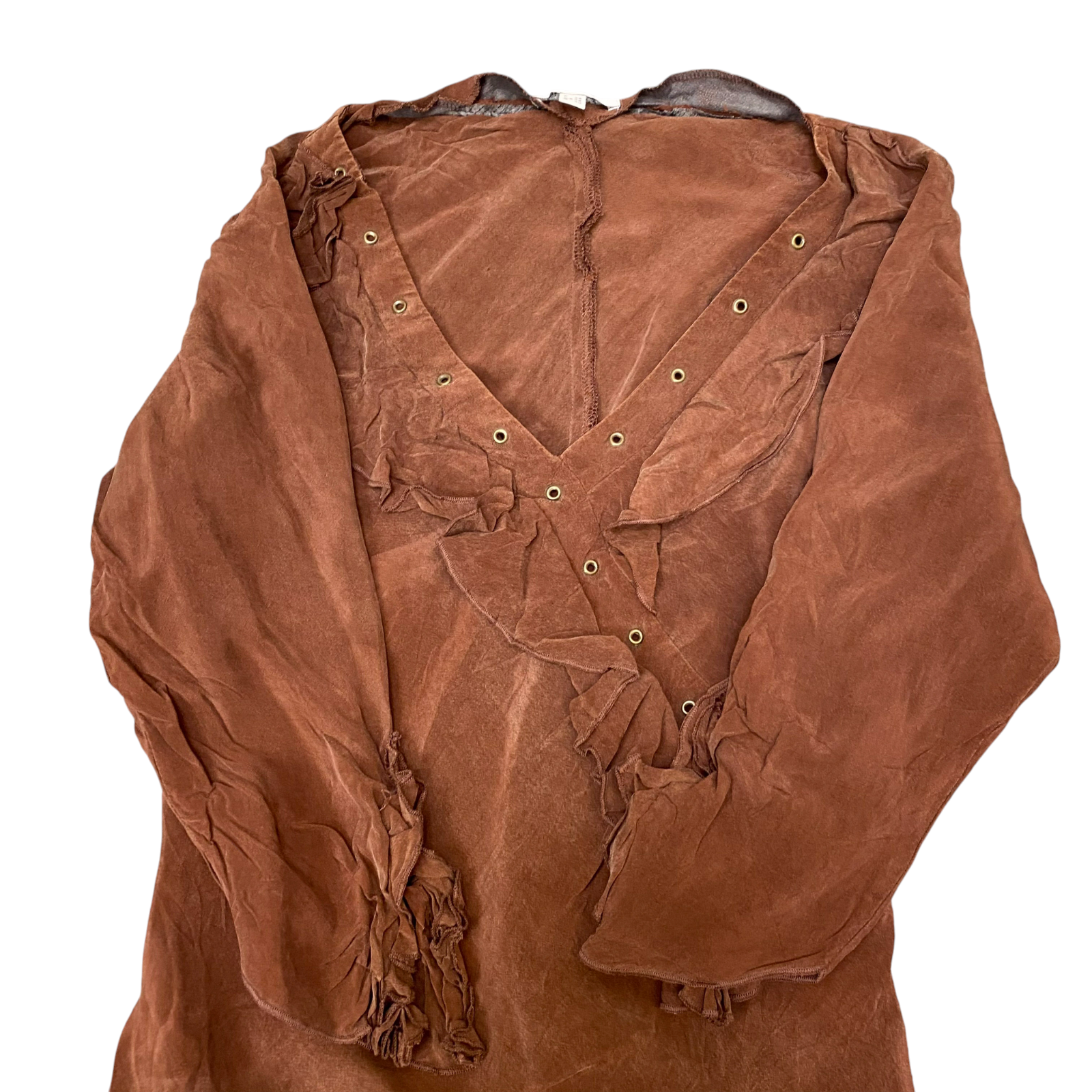 un deux trois Top Womens S Brown Solid Ruffle Detail Long Sleeve V Neck Pullover