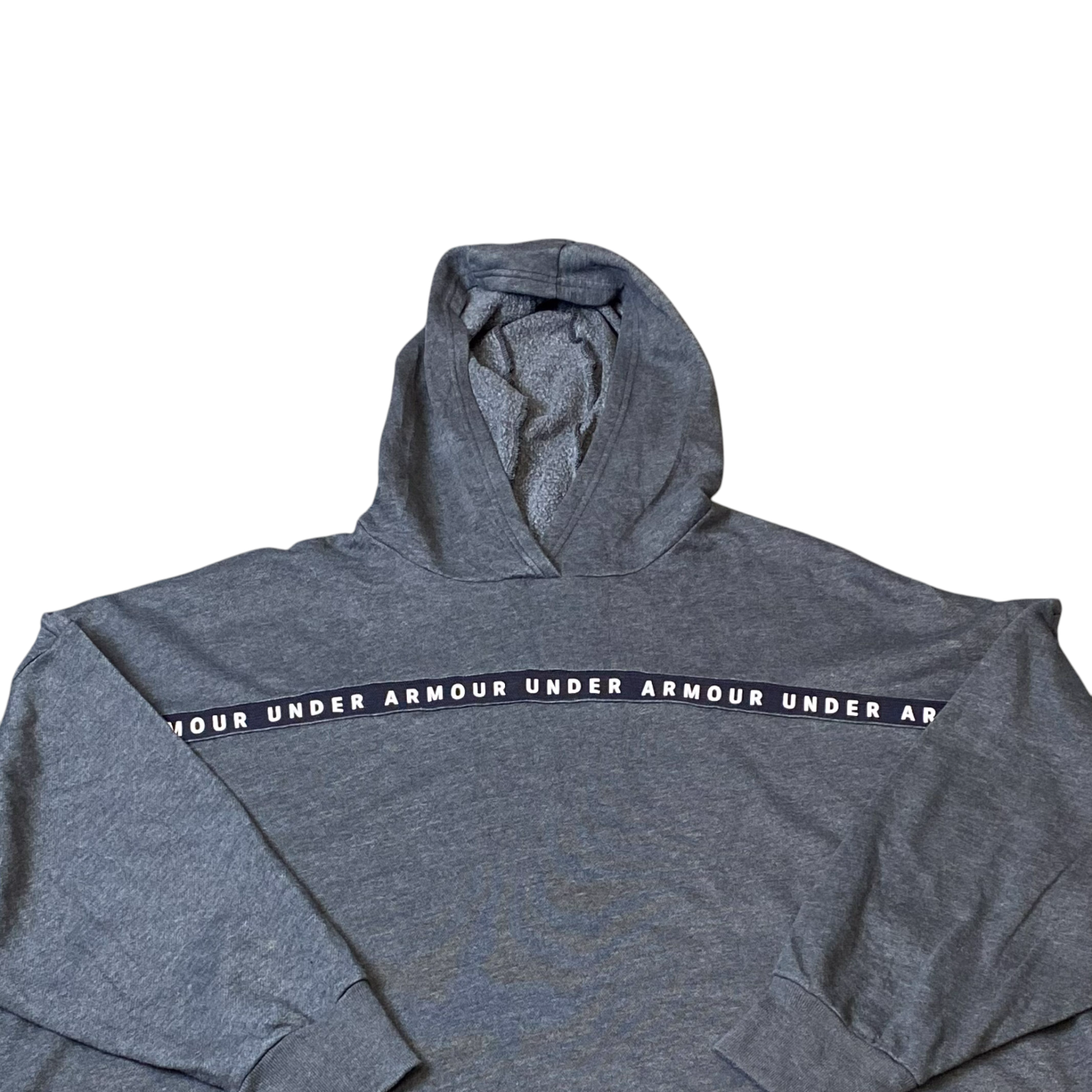 Under Armour Hoodie Womens XL Grey Activewear Logo Taped Crop Pullover Overhead