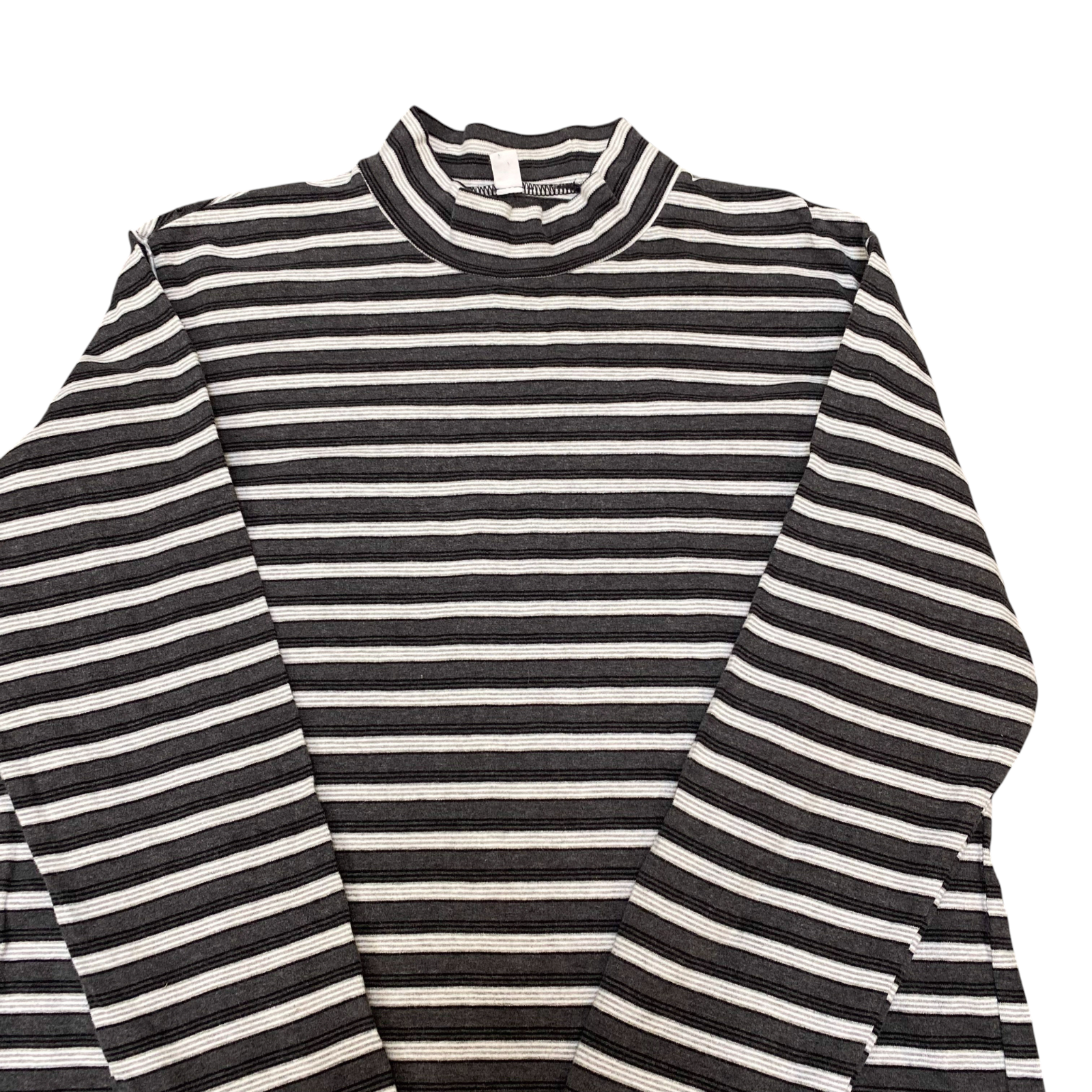 Uniqolo Jumper Womens L Grey White Striped Knit Long Sleeve Mock Neck Pullover
