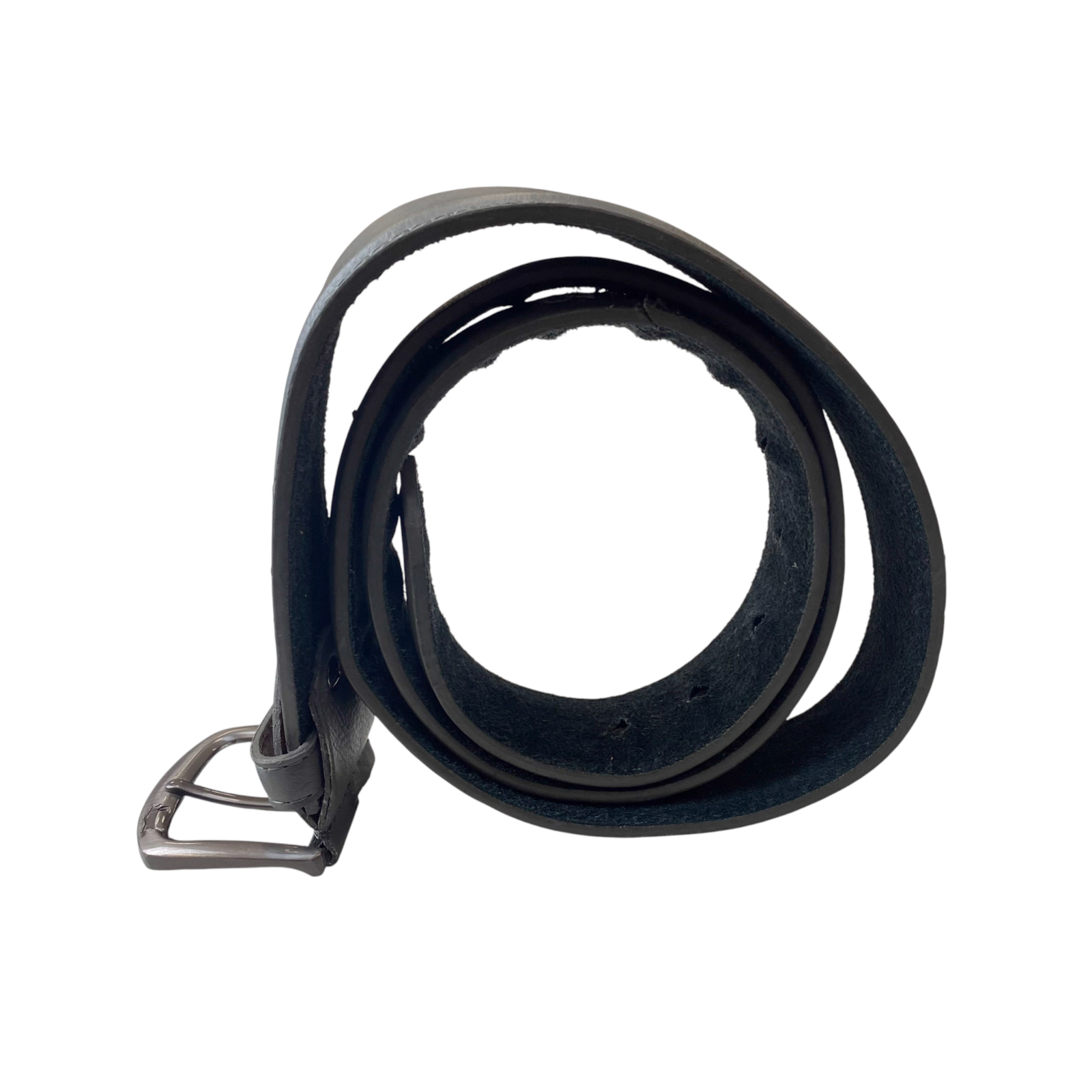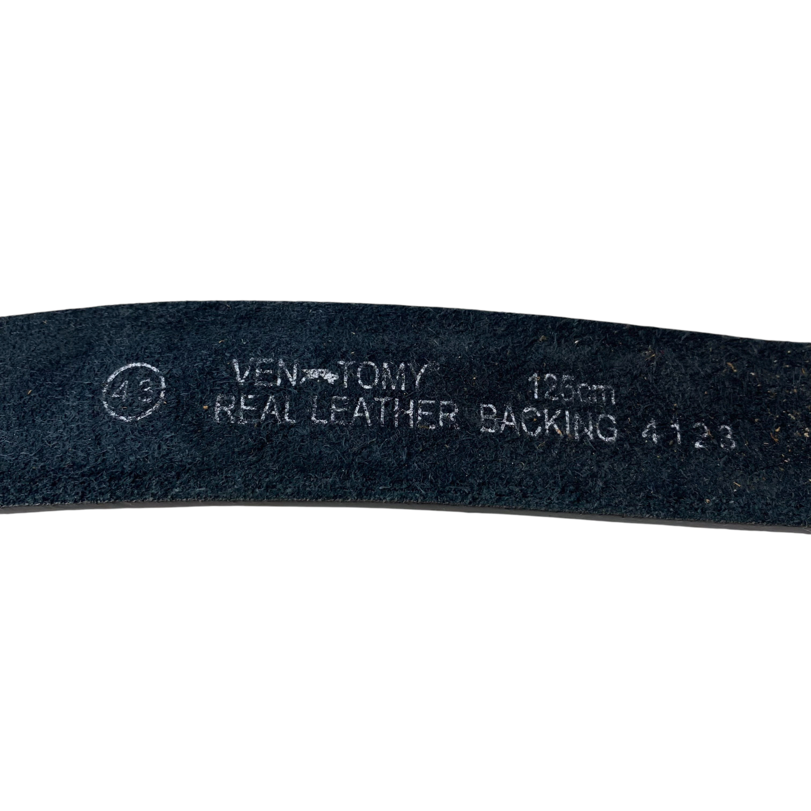 VEN-TOMY Waist Belt Mens Black Real Leather Adjustable Silver Buckle Size 43 in