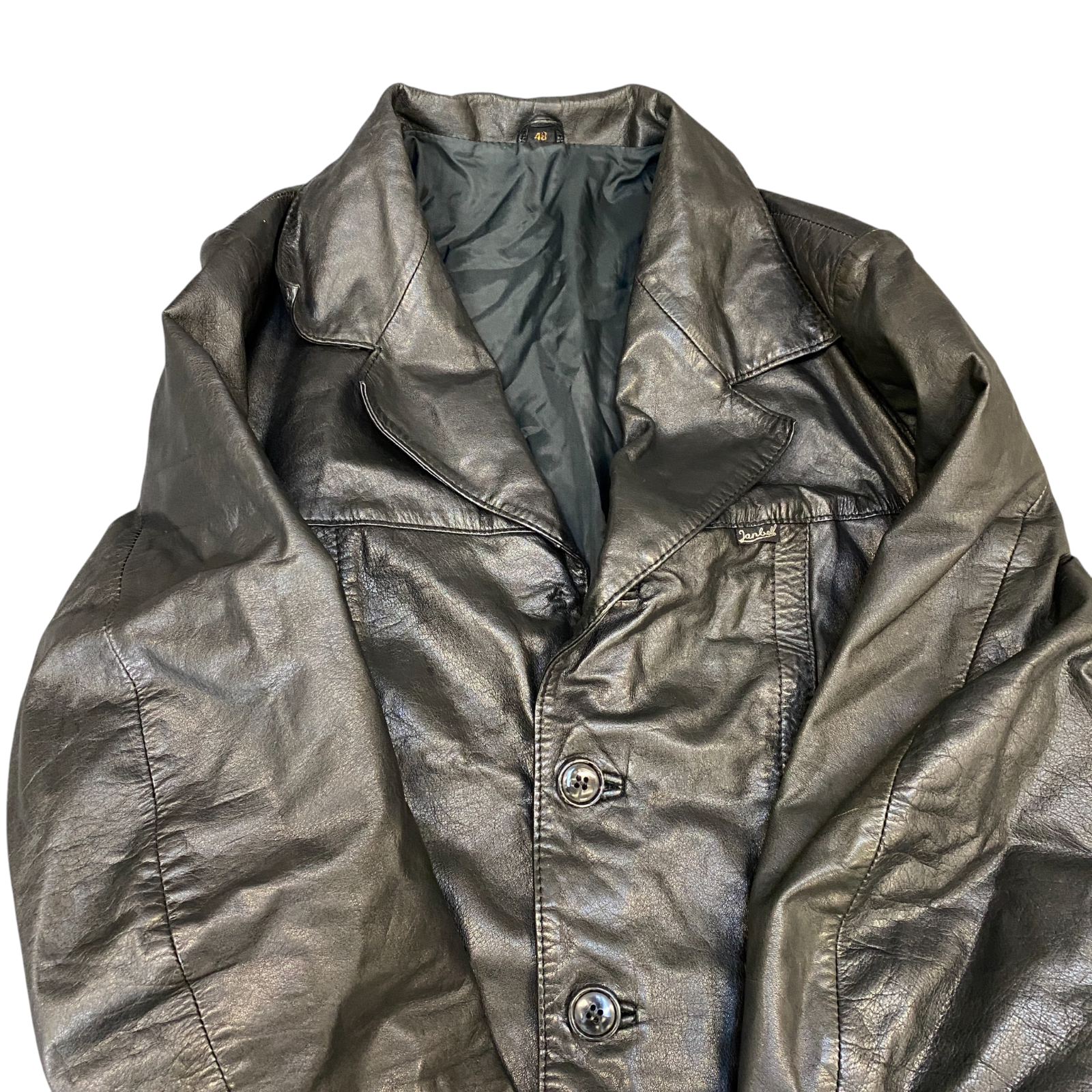 Women Leather Blazer Jacket Medium Black Long Sleeve Notch Lapel Single Breasted