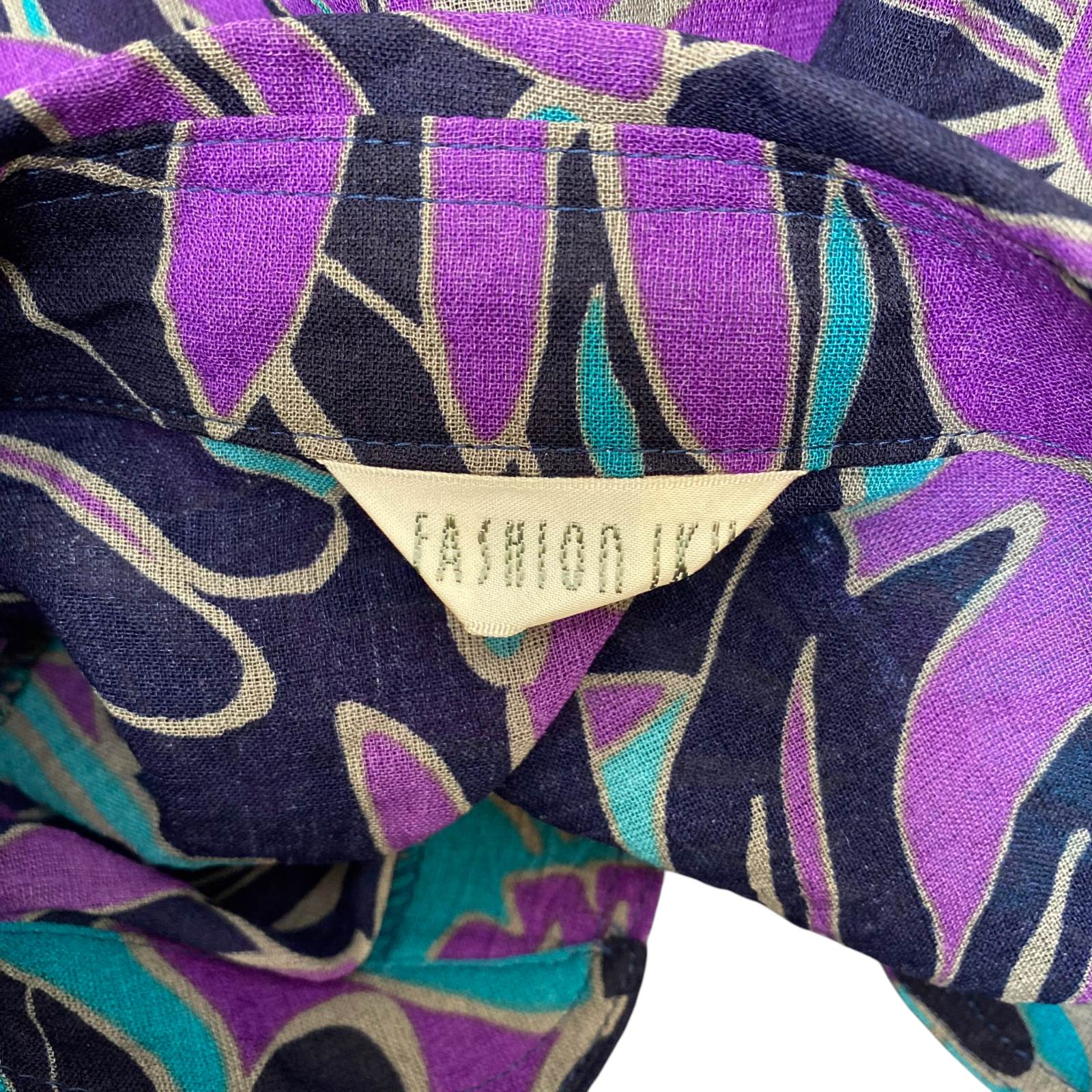 Women Shirt Top M Multi Floral Half Sleeve Collared Classic Outdoor Button Down
