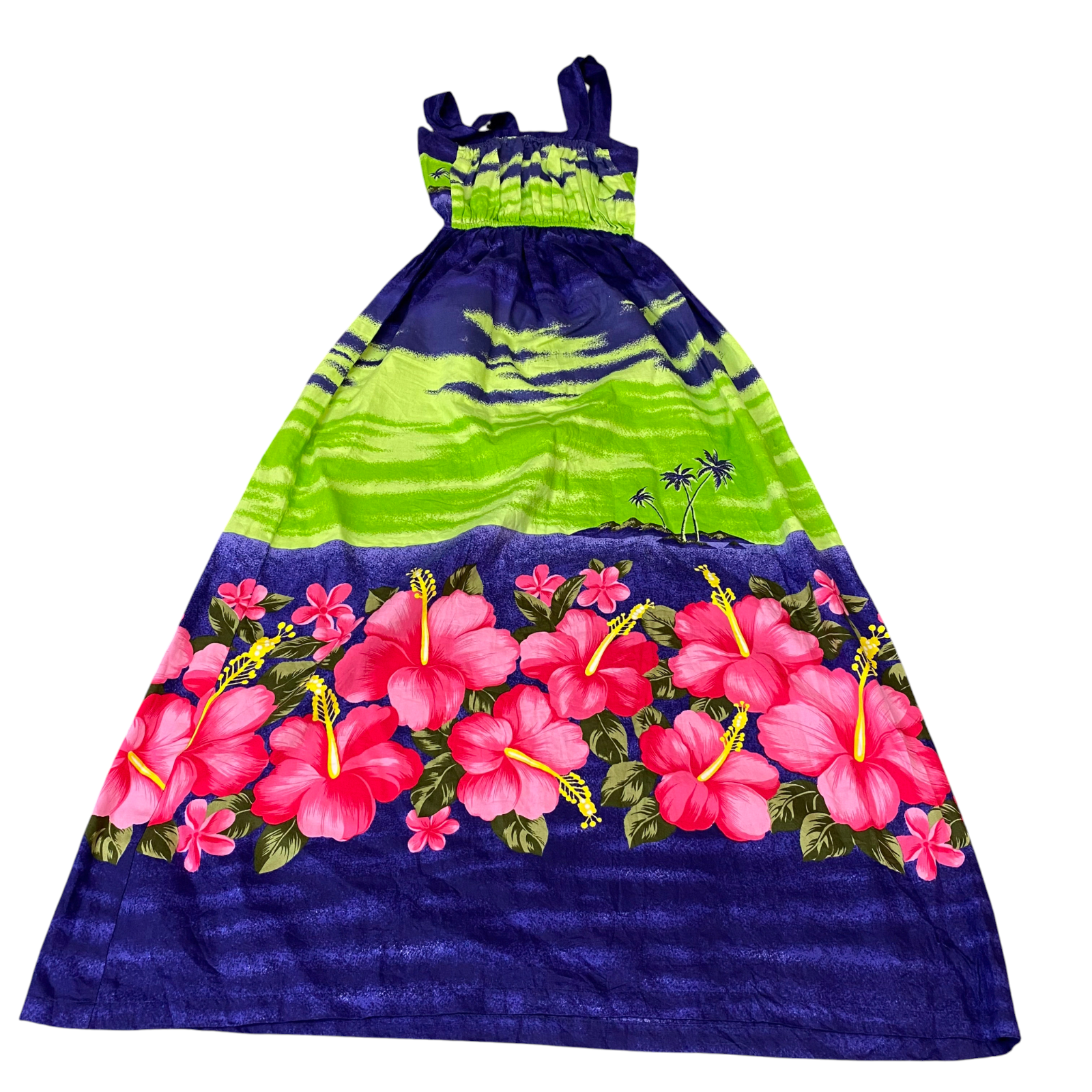 Womens A-Line Long Dress S Multi Floral Pleated Sleeveless Square Neck Pullover