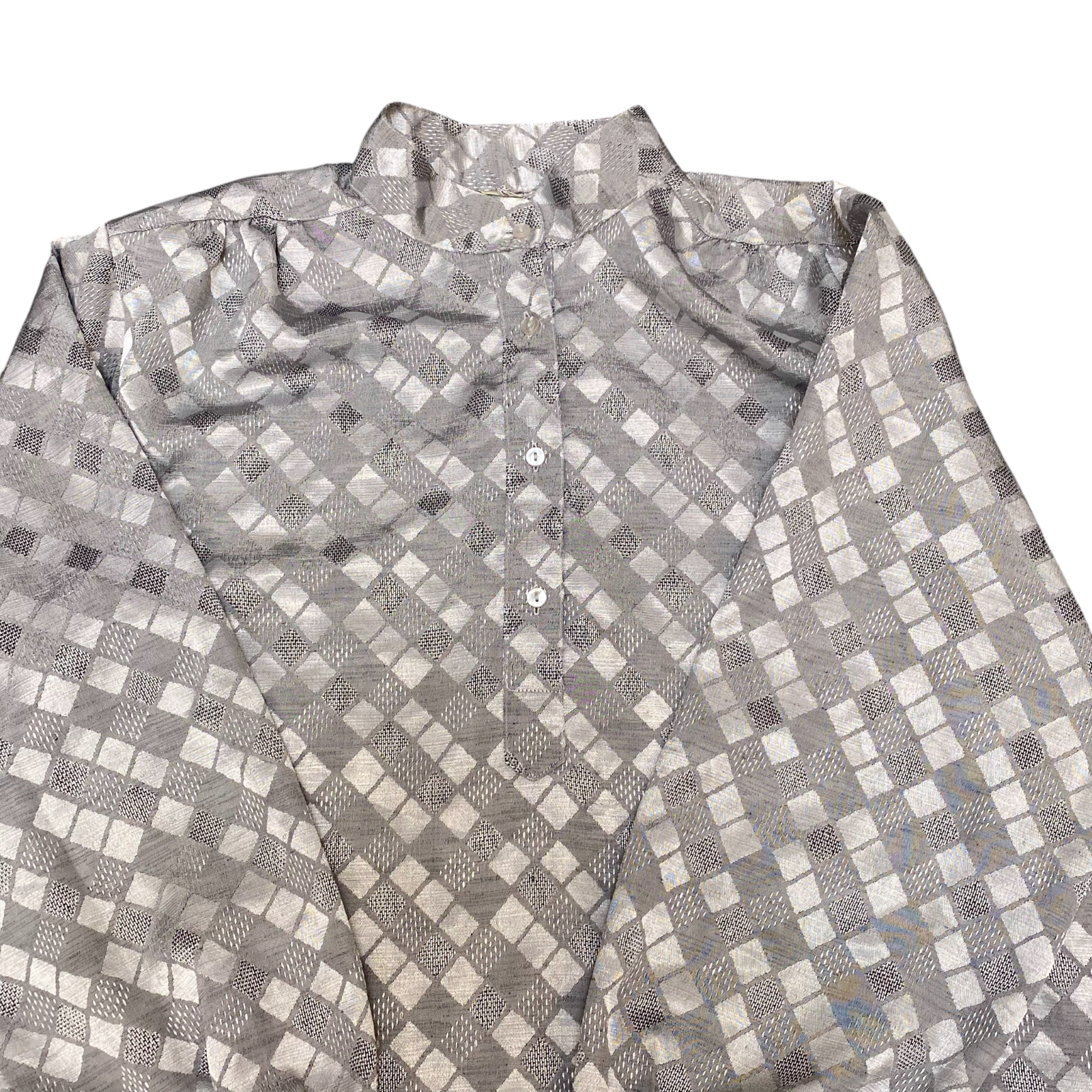 Womens Blouse Top L Grey Geometric Long Sleeve Casual Button Up Outdoor Comfort