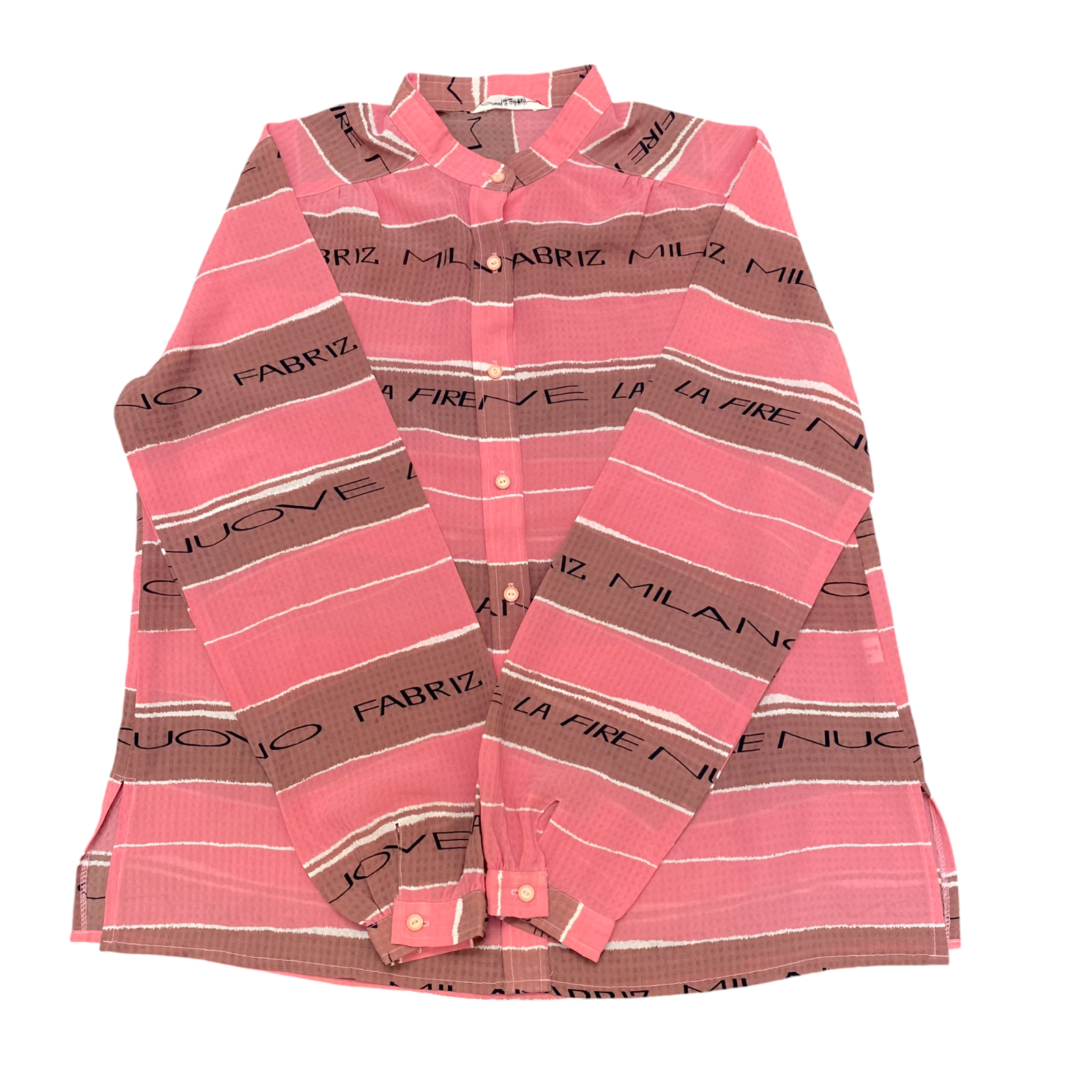 Womens Button Up Shirt M Pink Brown Striped Casual Long Sleeve Collared Outdoor