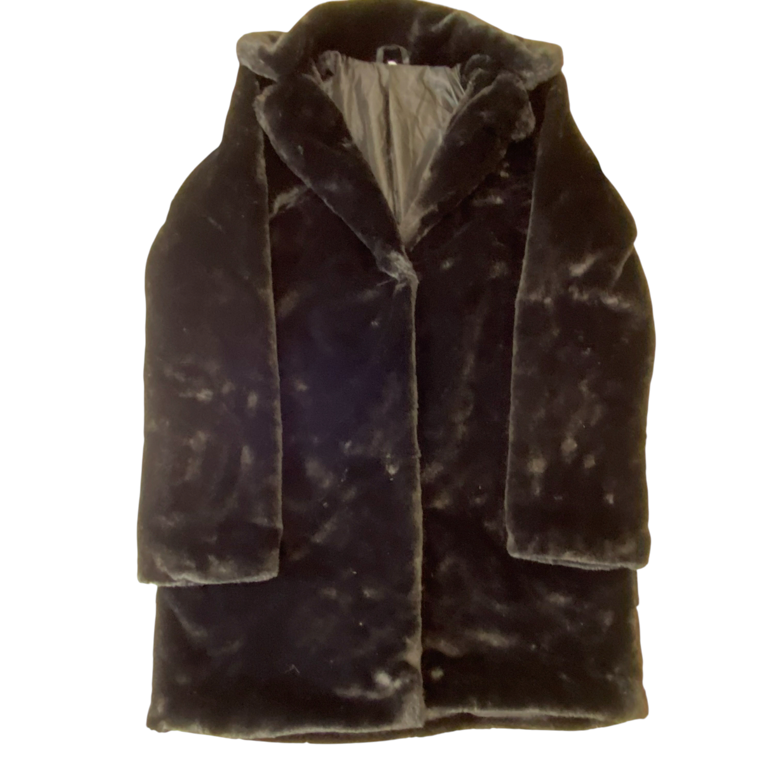 Womens Faux Fur Coat Medium Brown Soft Plush Long Sleeve Collared Button Front