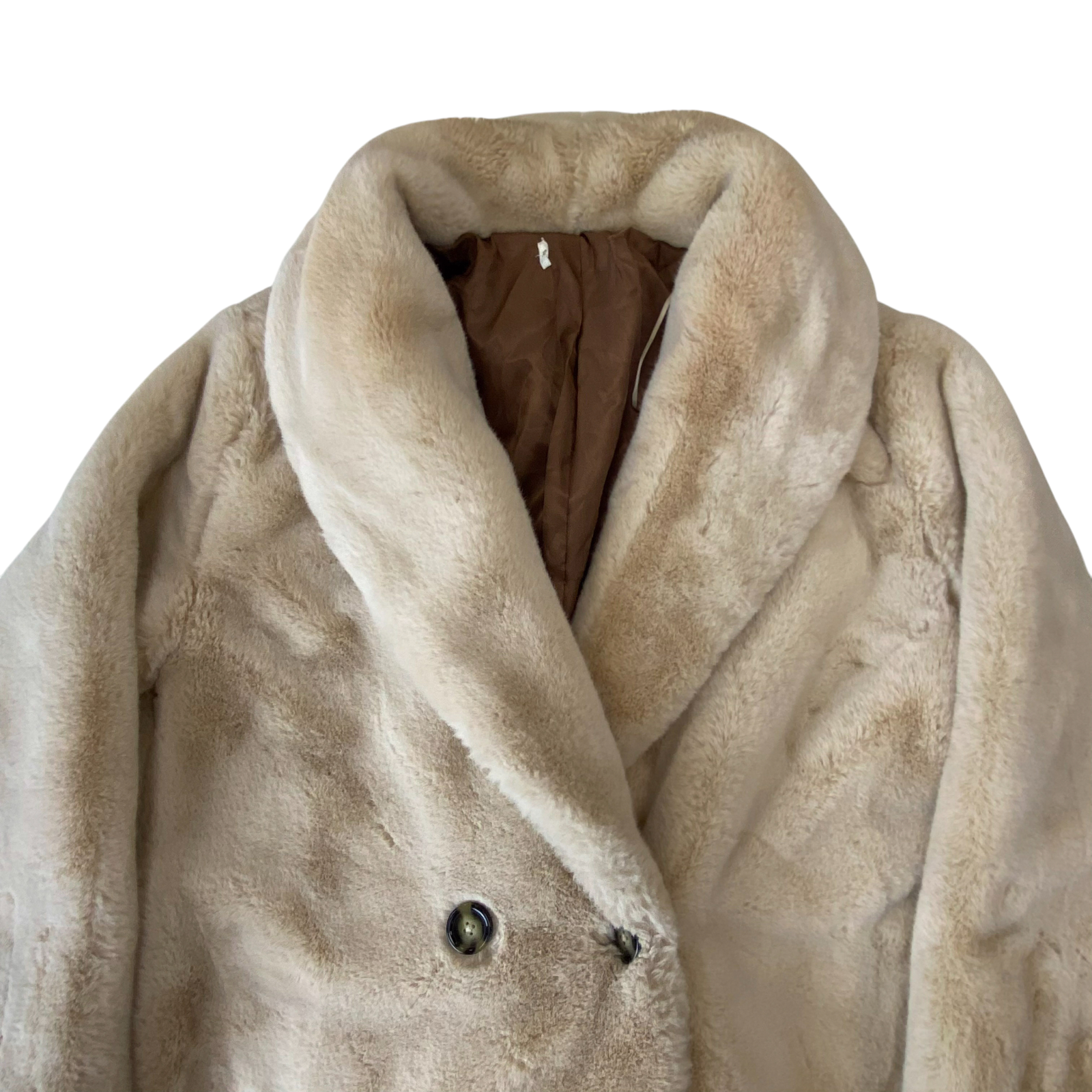 Womens Faux Fur Long Coat Large Beige Casual Long Sleeve Ultra-Soft Button Front