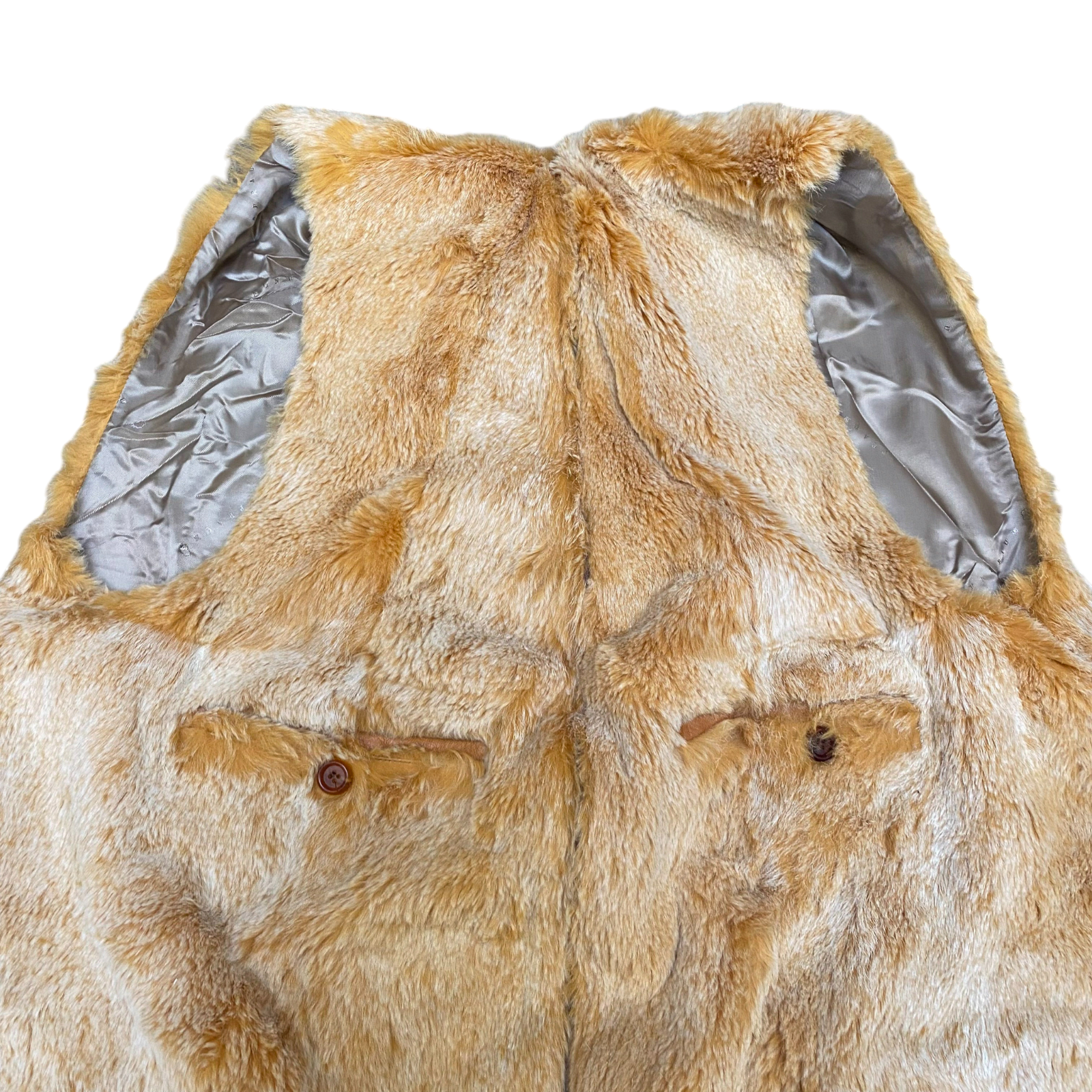 Womens Faux Fur Vest Large Brown Lined Champagne Shimmer Lightweight Sleeveless