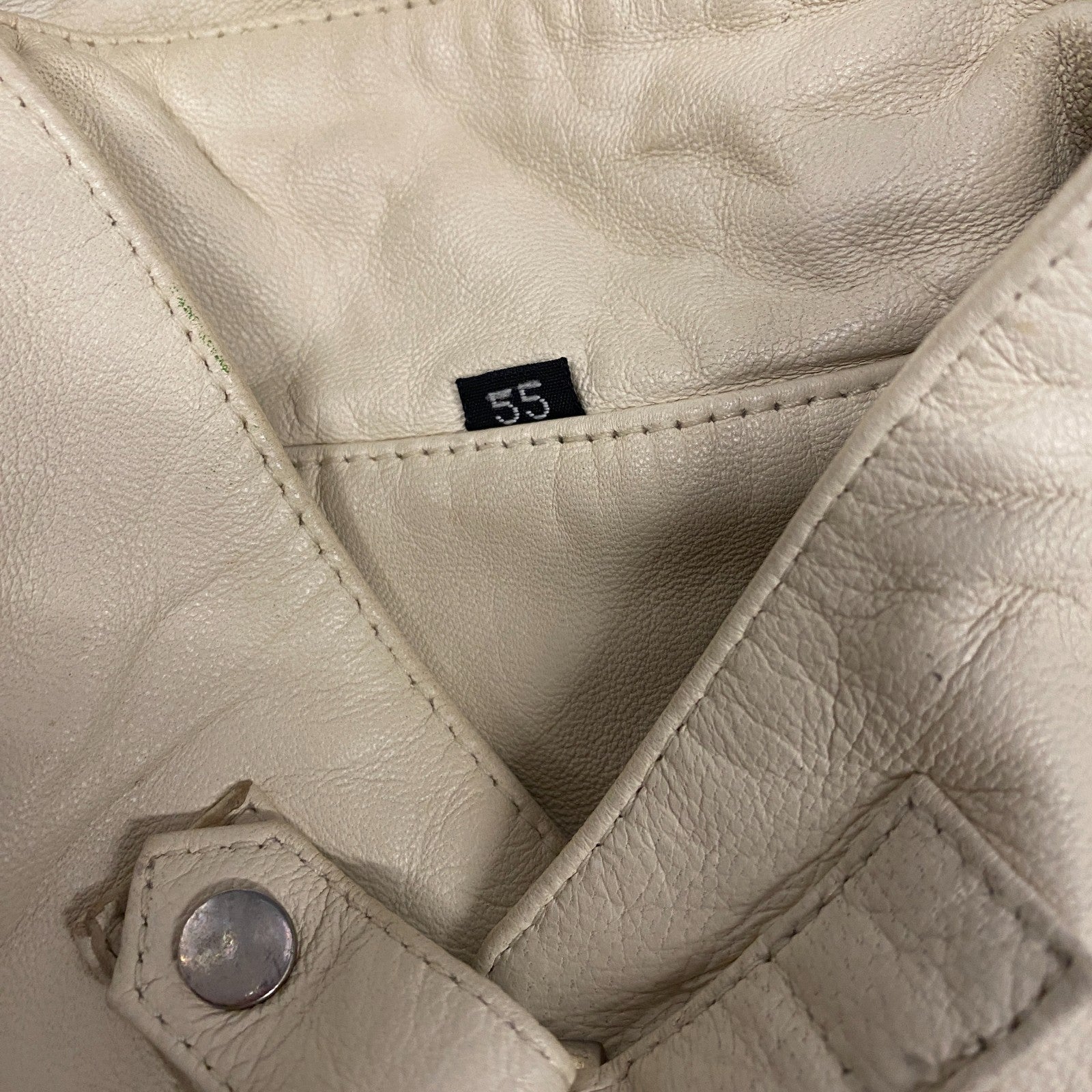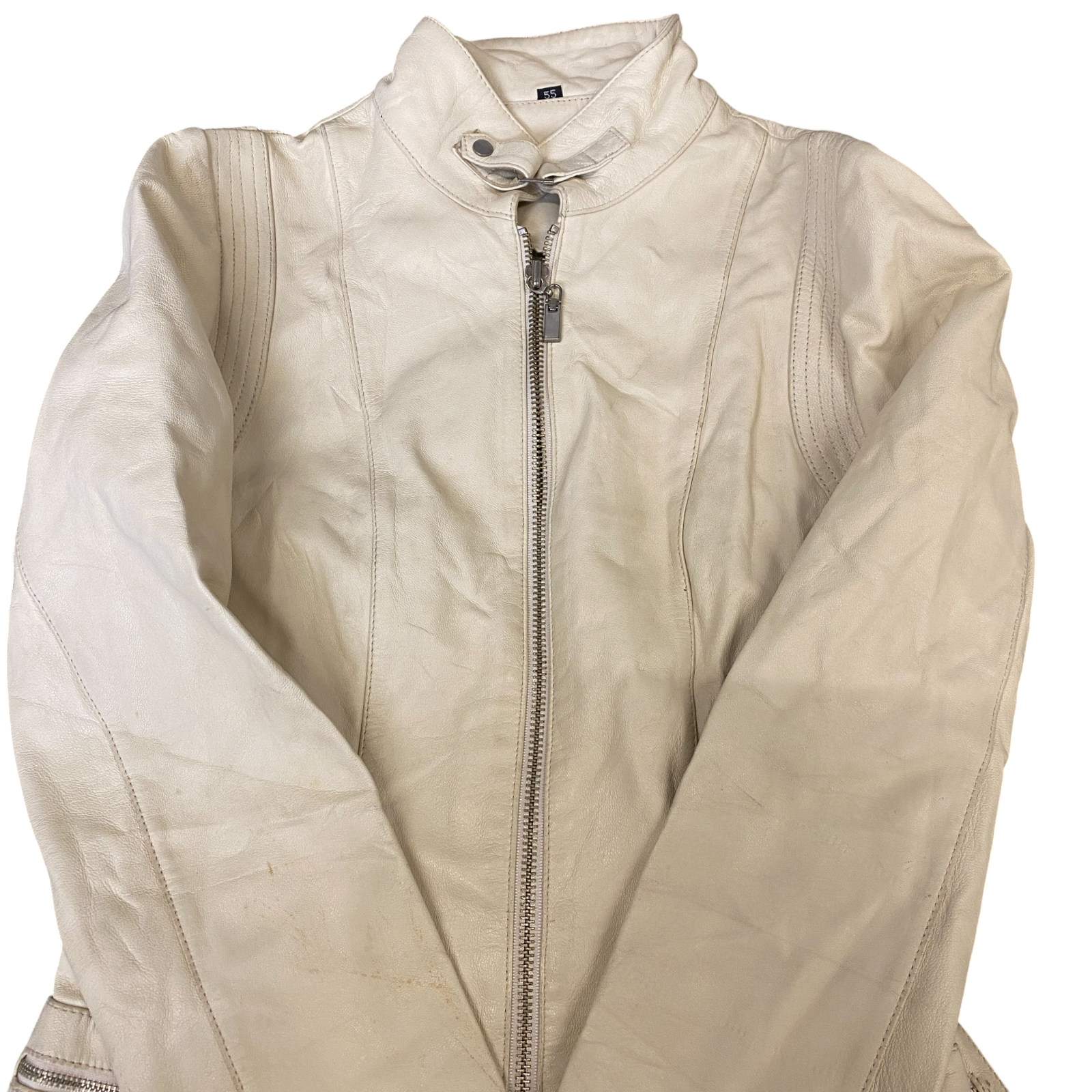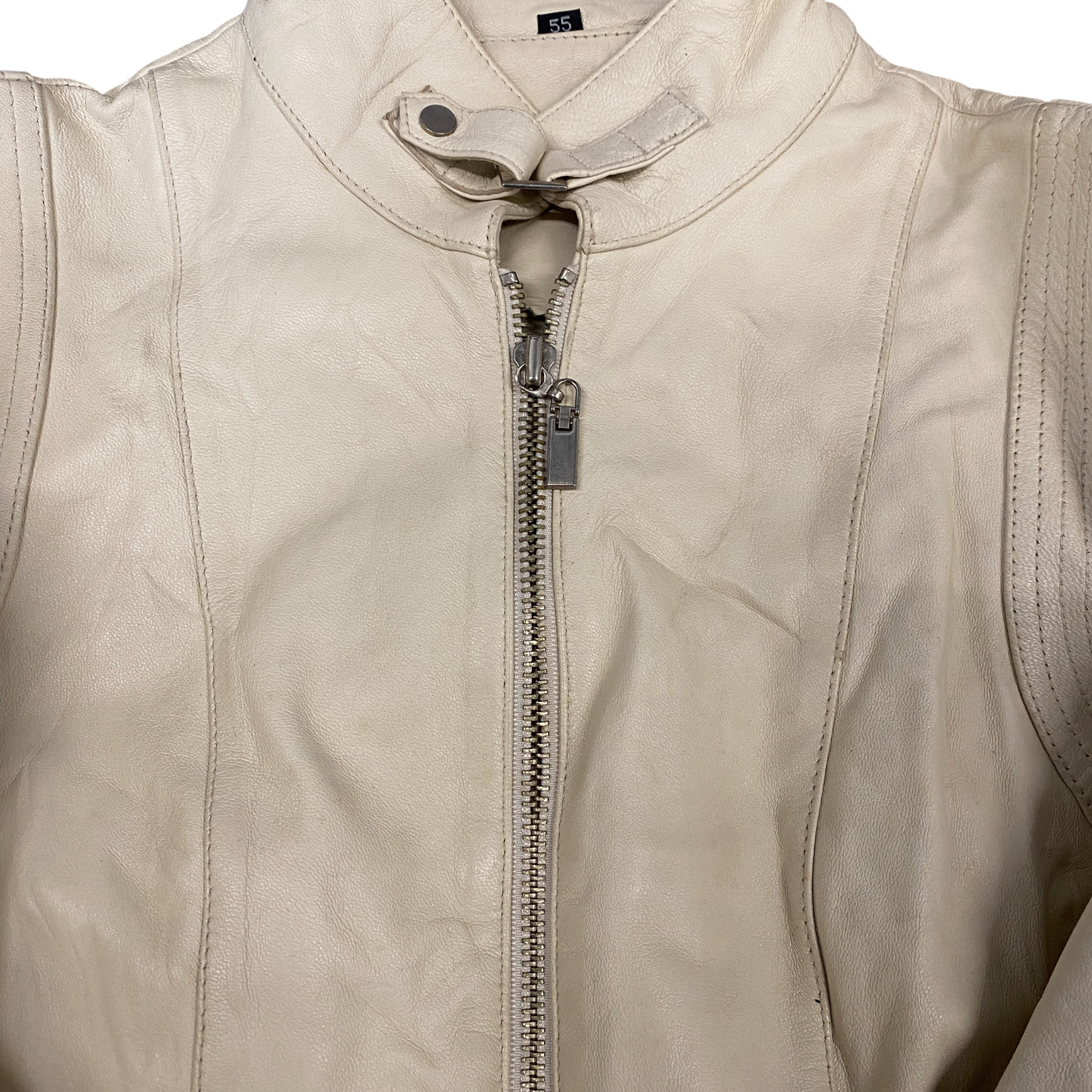 Womens Faux Leather Biker Jacket Small Beige Fully Lined Long Sleeve Full Zip
