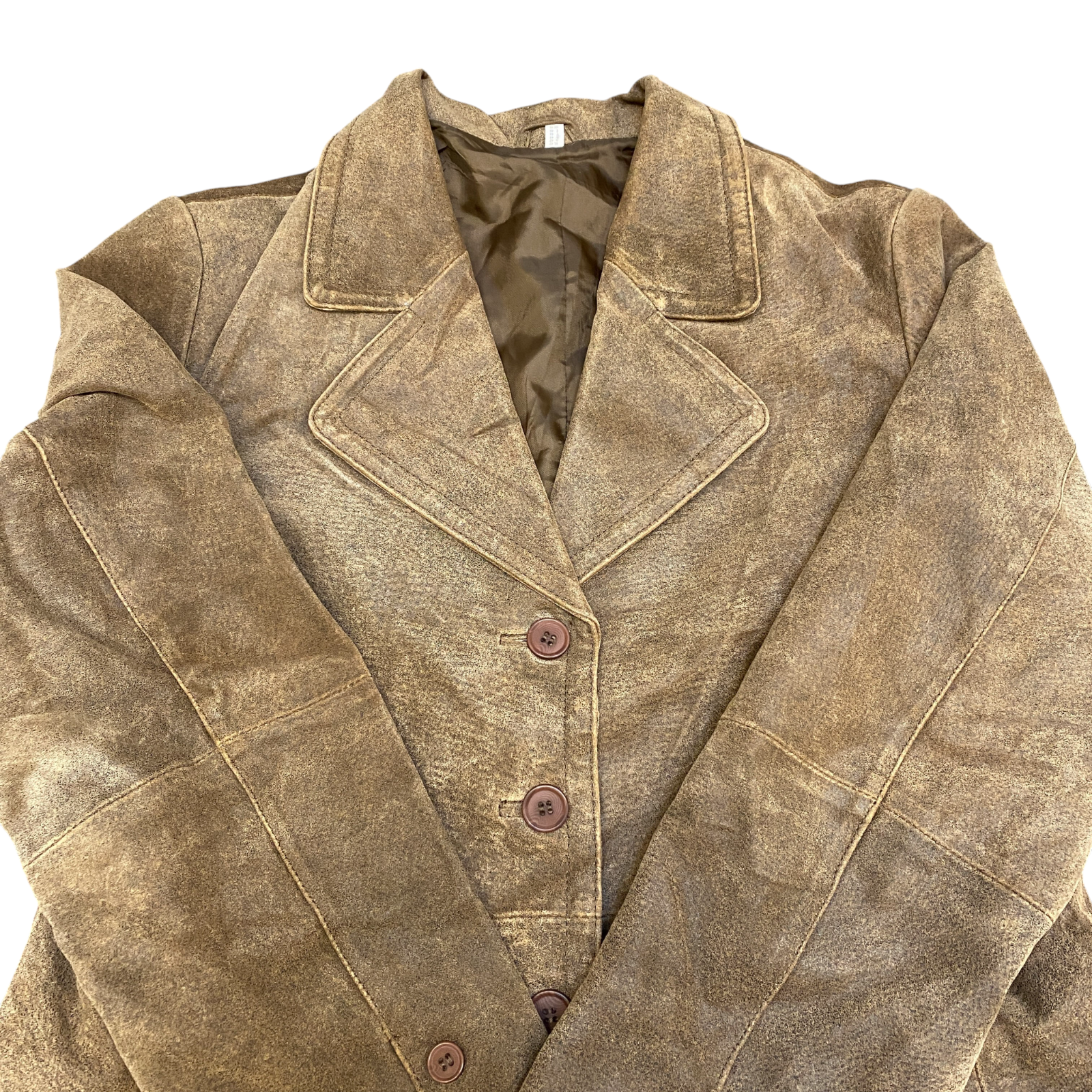 Womens Genuine Leather Blazer Jacket Medium Brown Notch Lapel Single Breasted