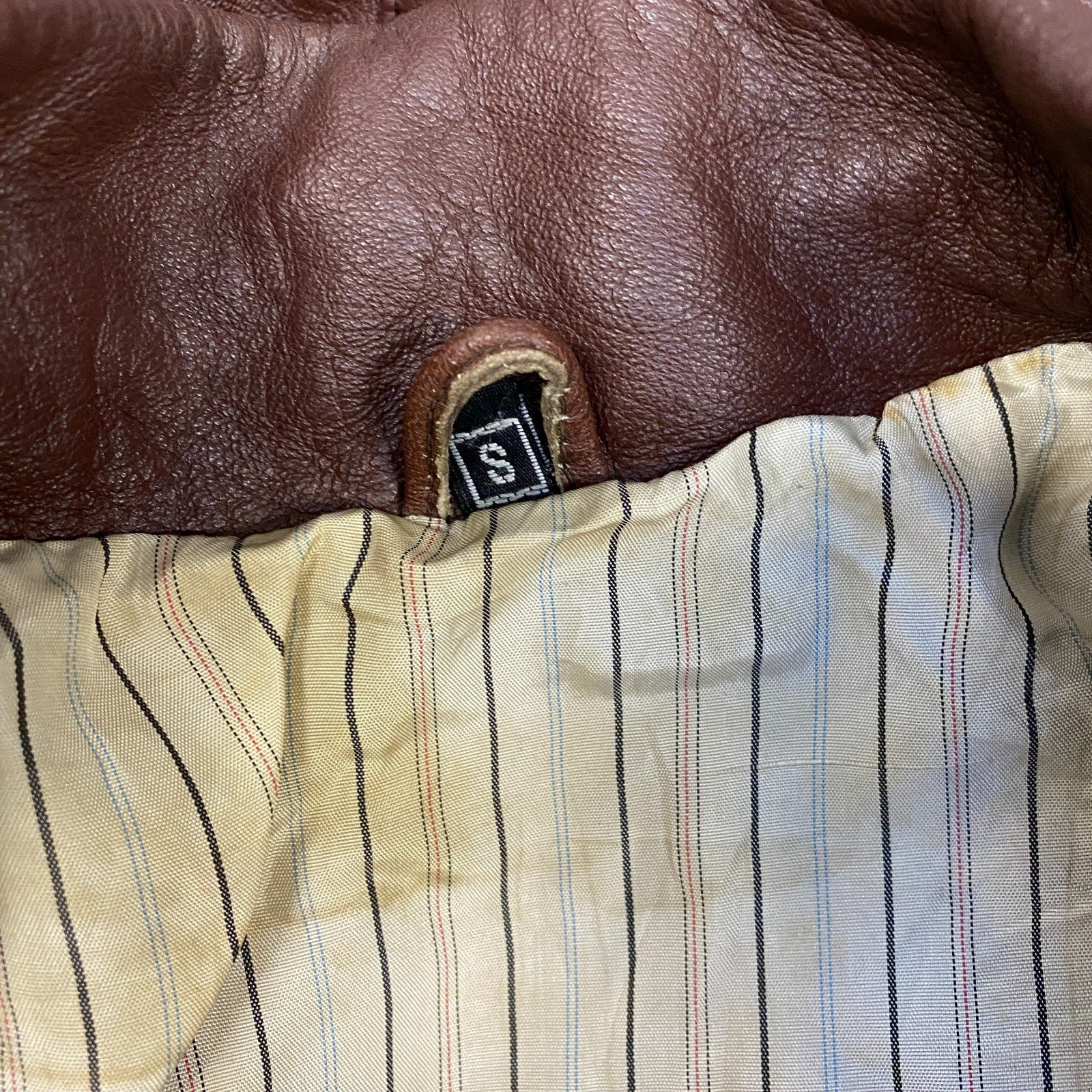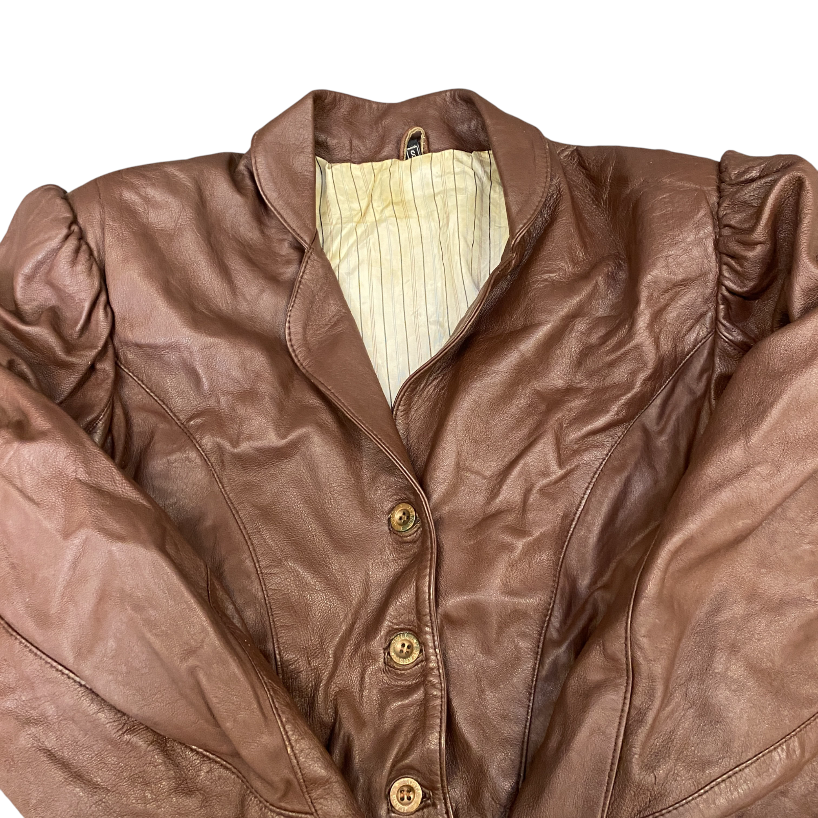 Womens Leather Blazer Jacket Small Brown Lined Notch Lapel Single Breasted